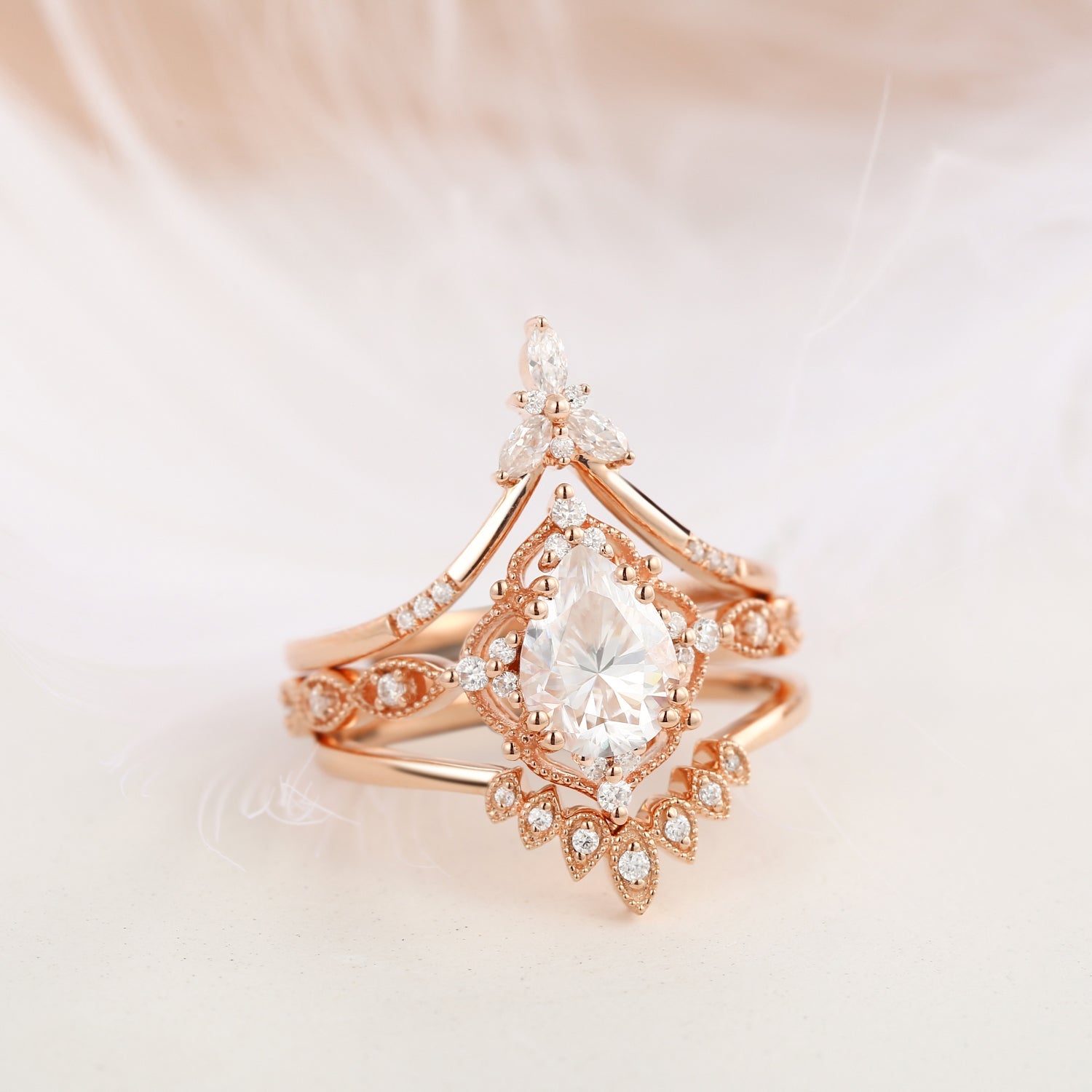 Vintage 1.5ct Pear Shaped Moissanite Engagement Ring
