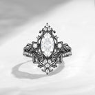 Vintage Inspired Marquise Cut Moissanite Unique Cluster Engagement Ring Bridal Set 2pcs