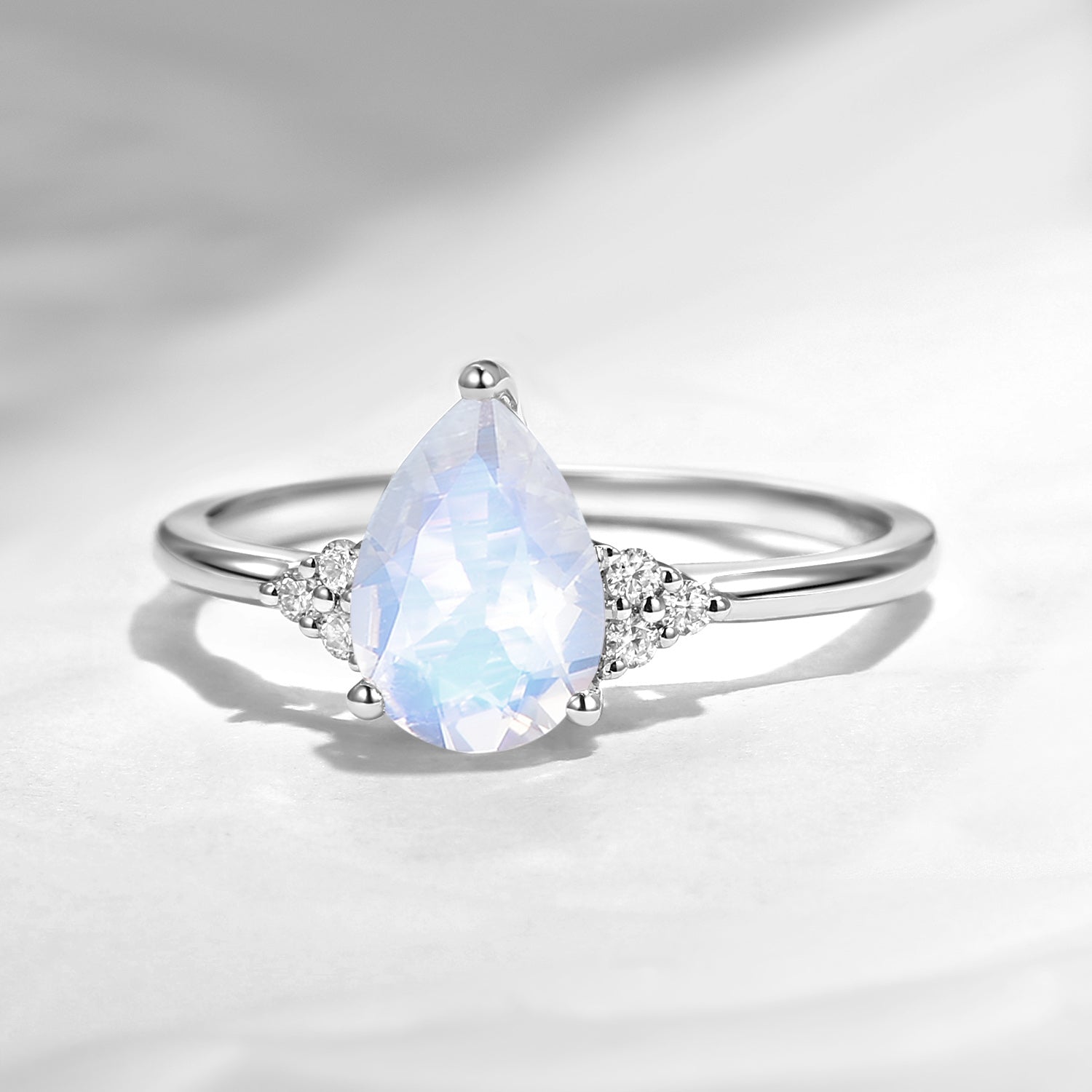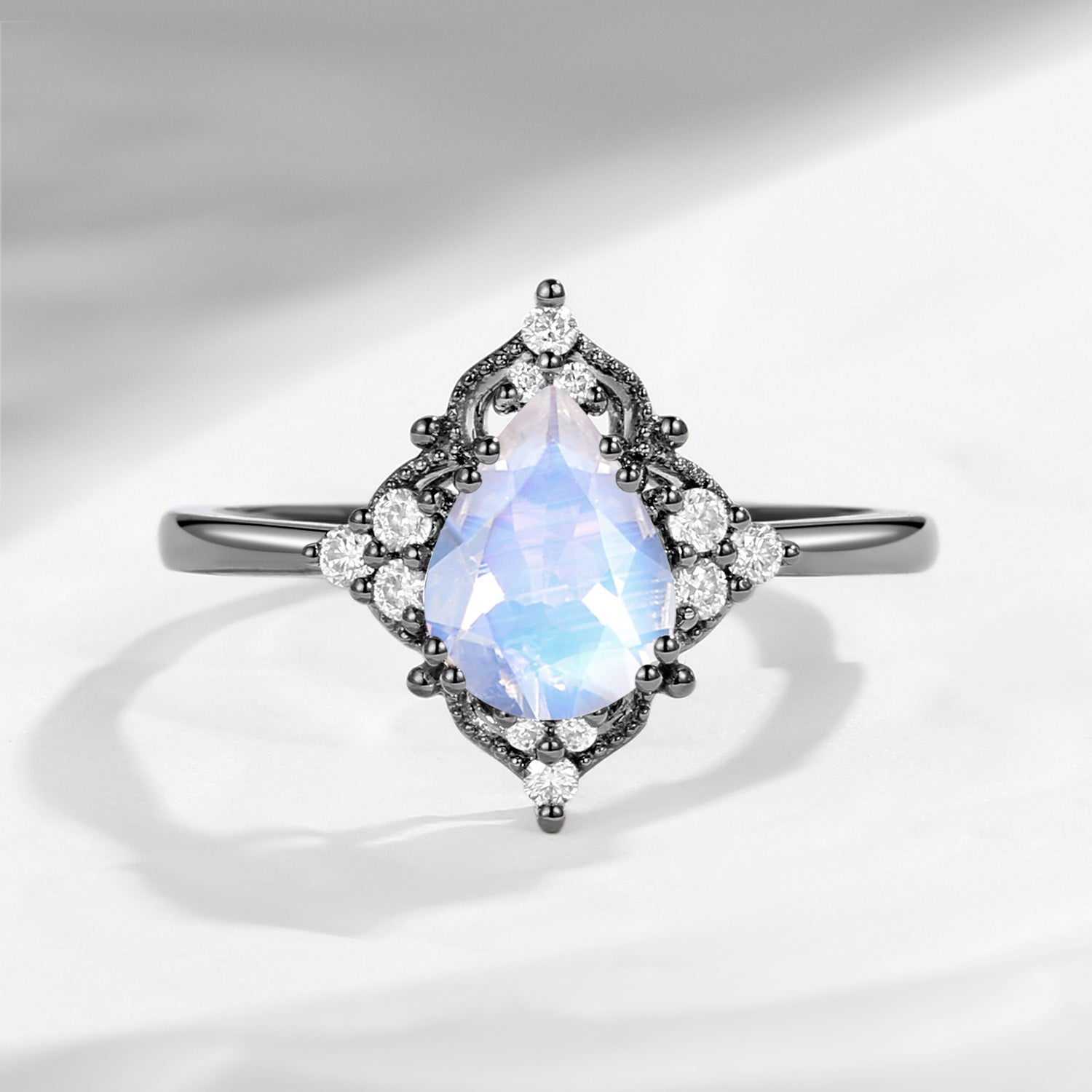 Pear Shaped Moonstone Engagement Ring Cluster Ring