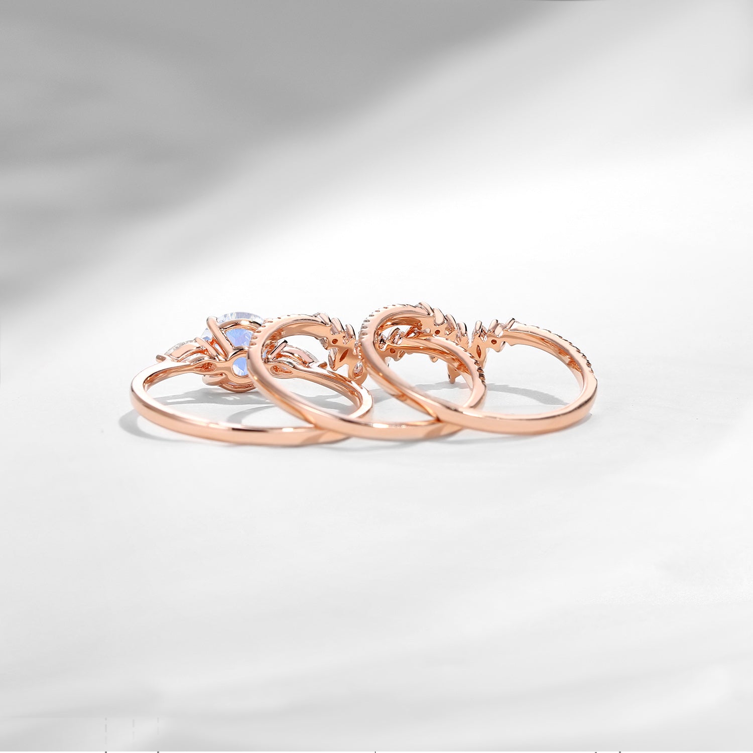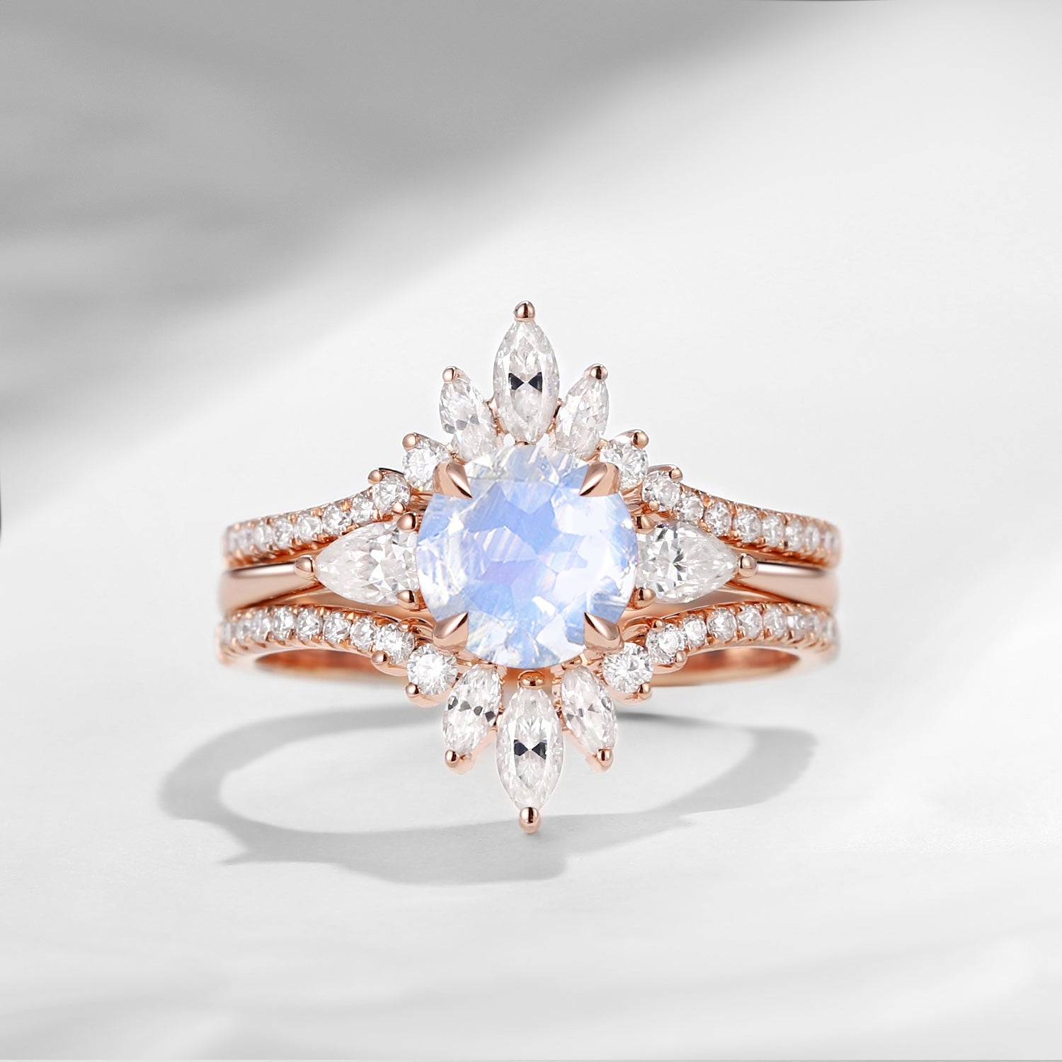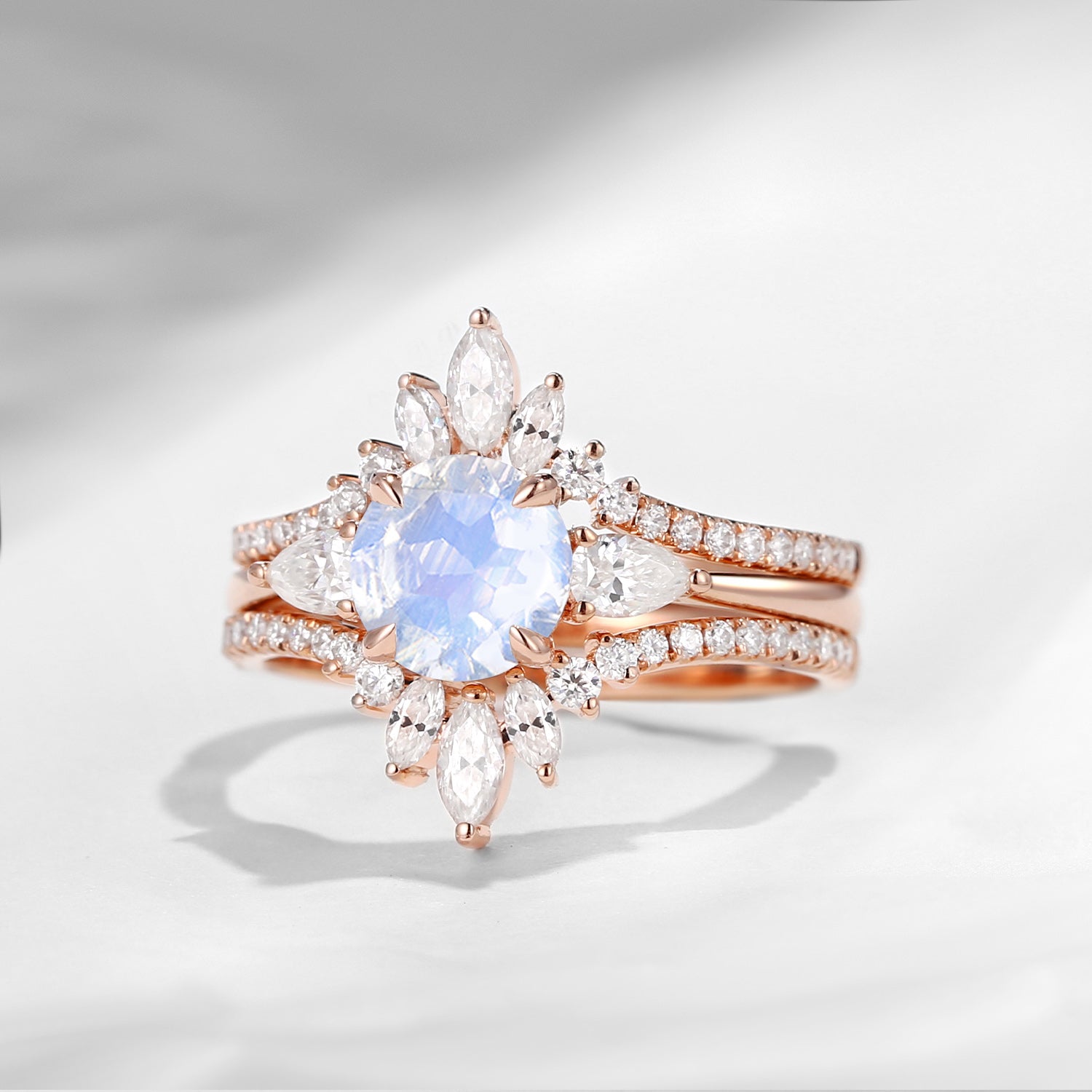 Bette‘s Eyes | Moonstone Cluster Bridal Ring Set 3pcs
