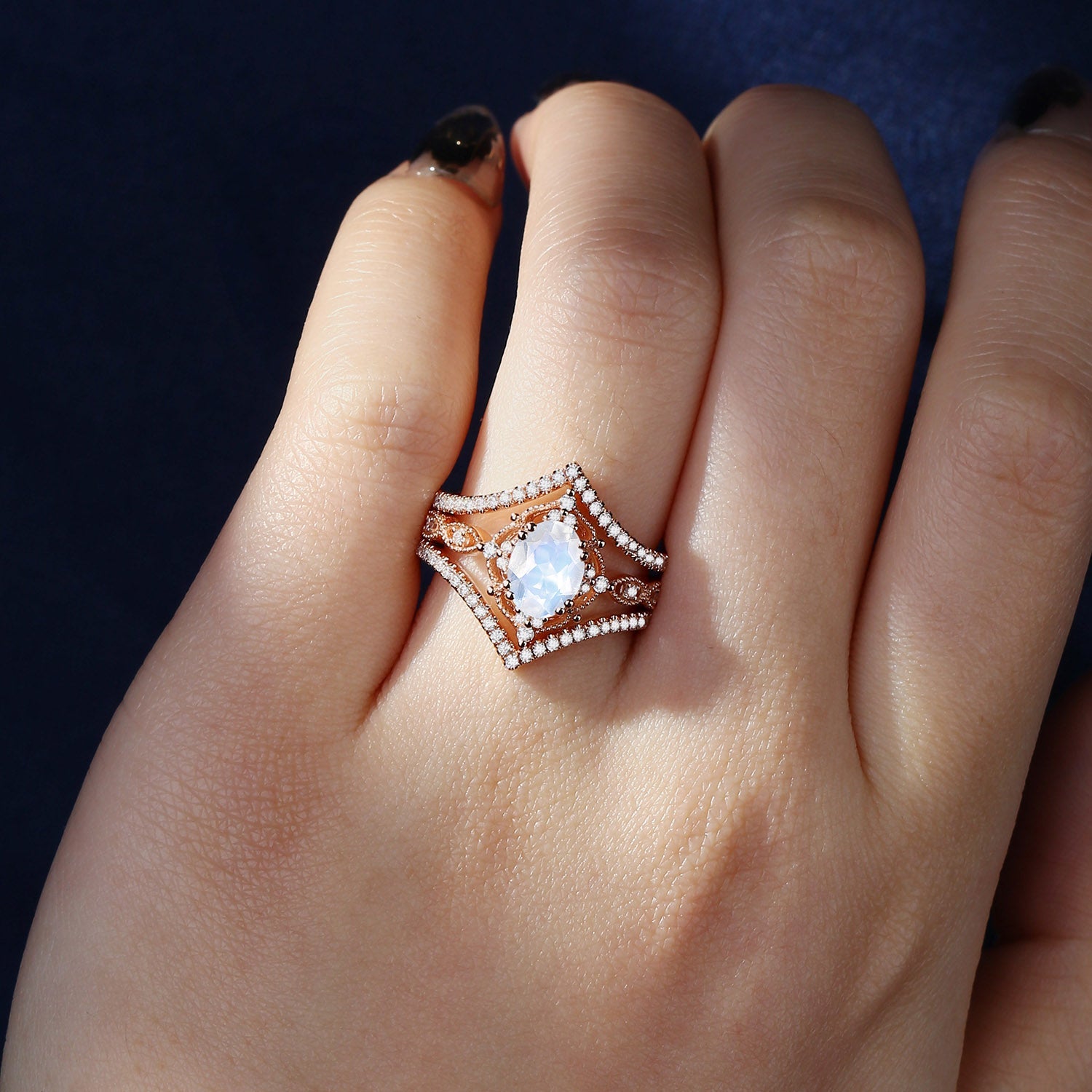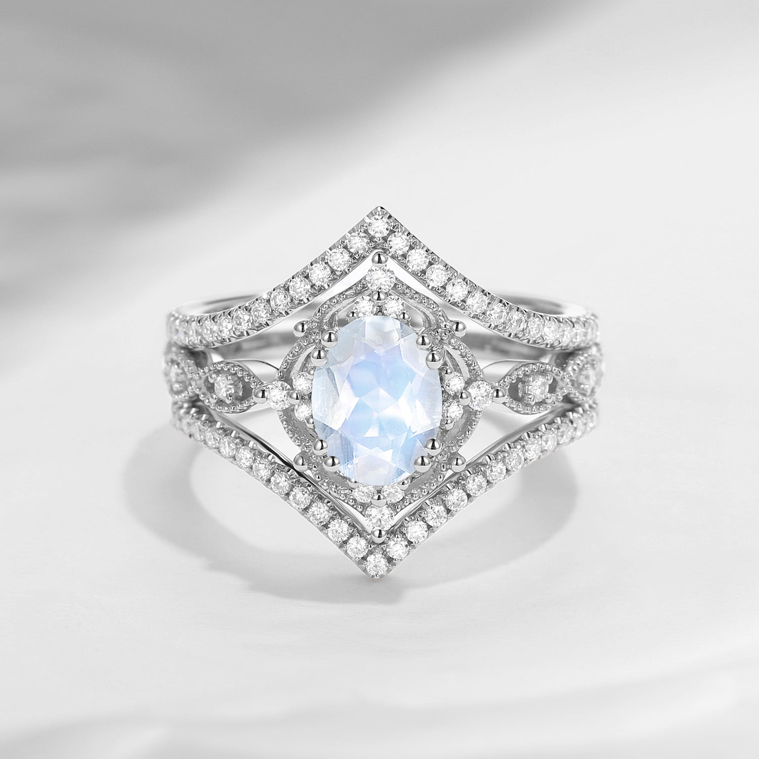 Oval Cut Vintage Inspired Moonstone Bridal Set 3pcs