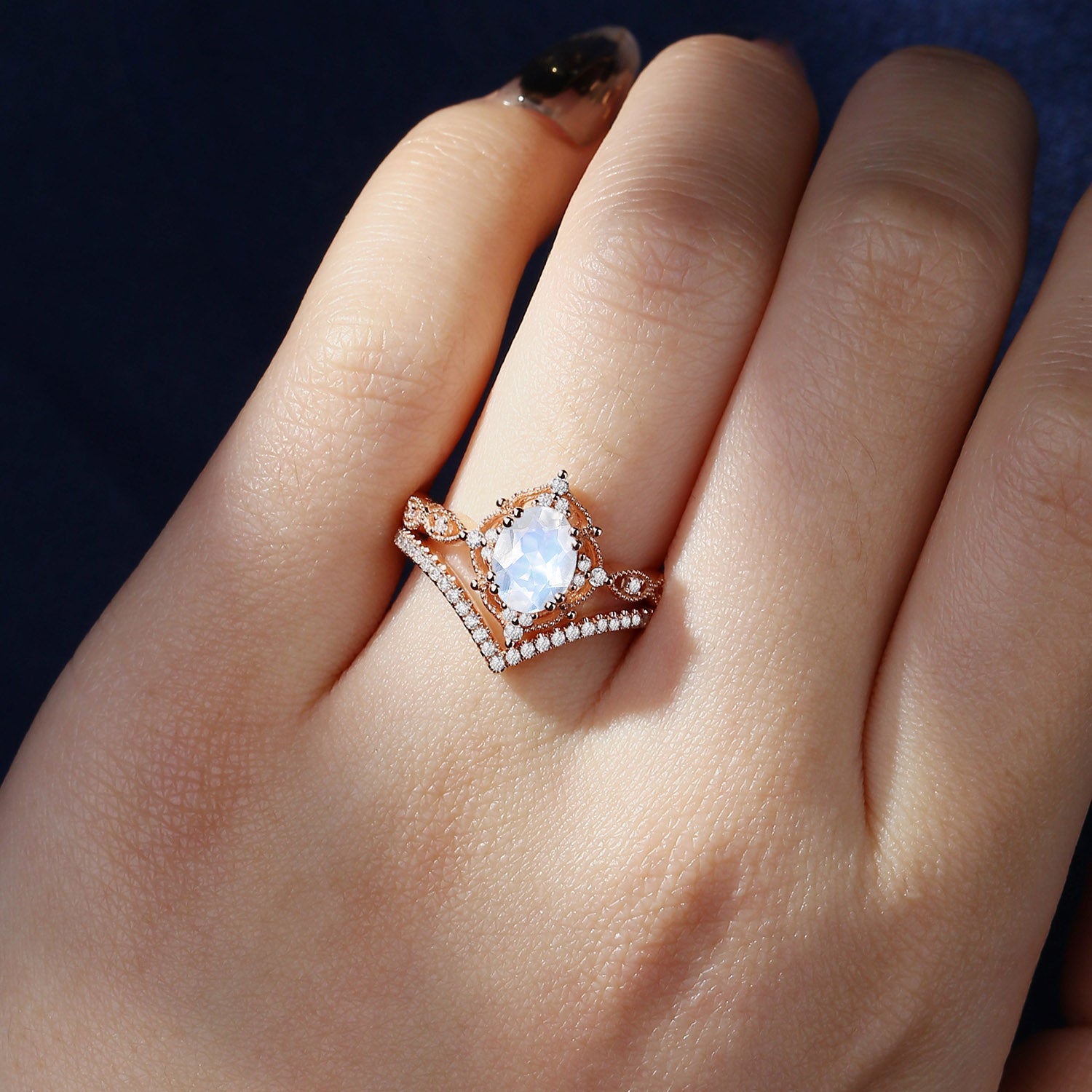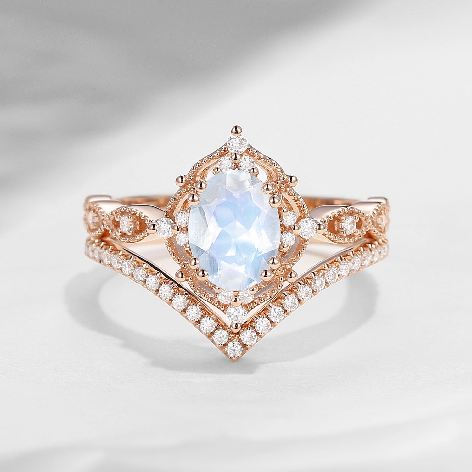 Oval Cut Vintage Inspired Moonstone Bridal Set 2pcs