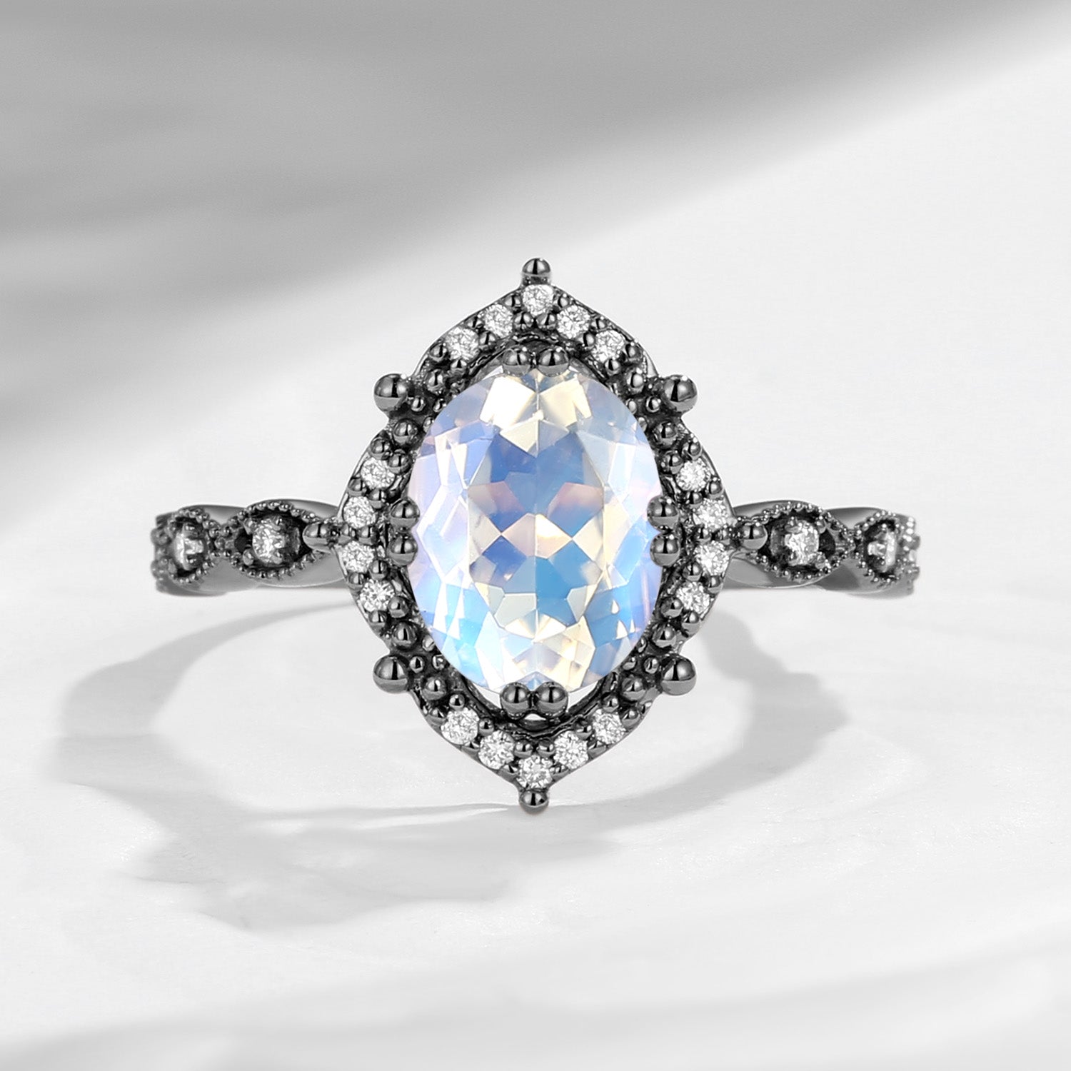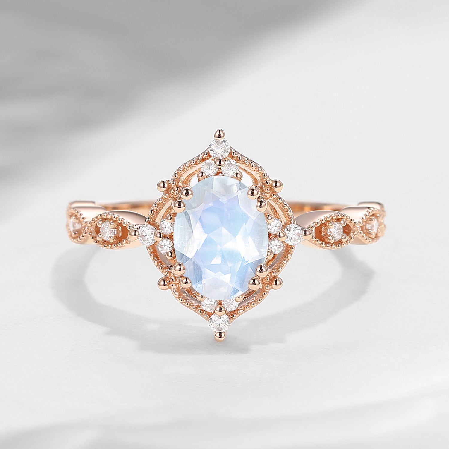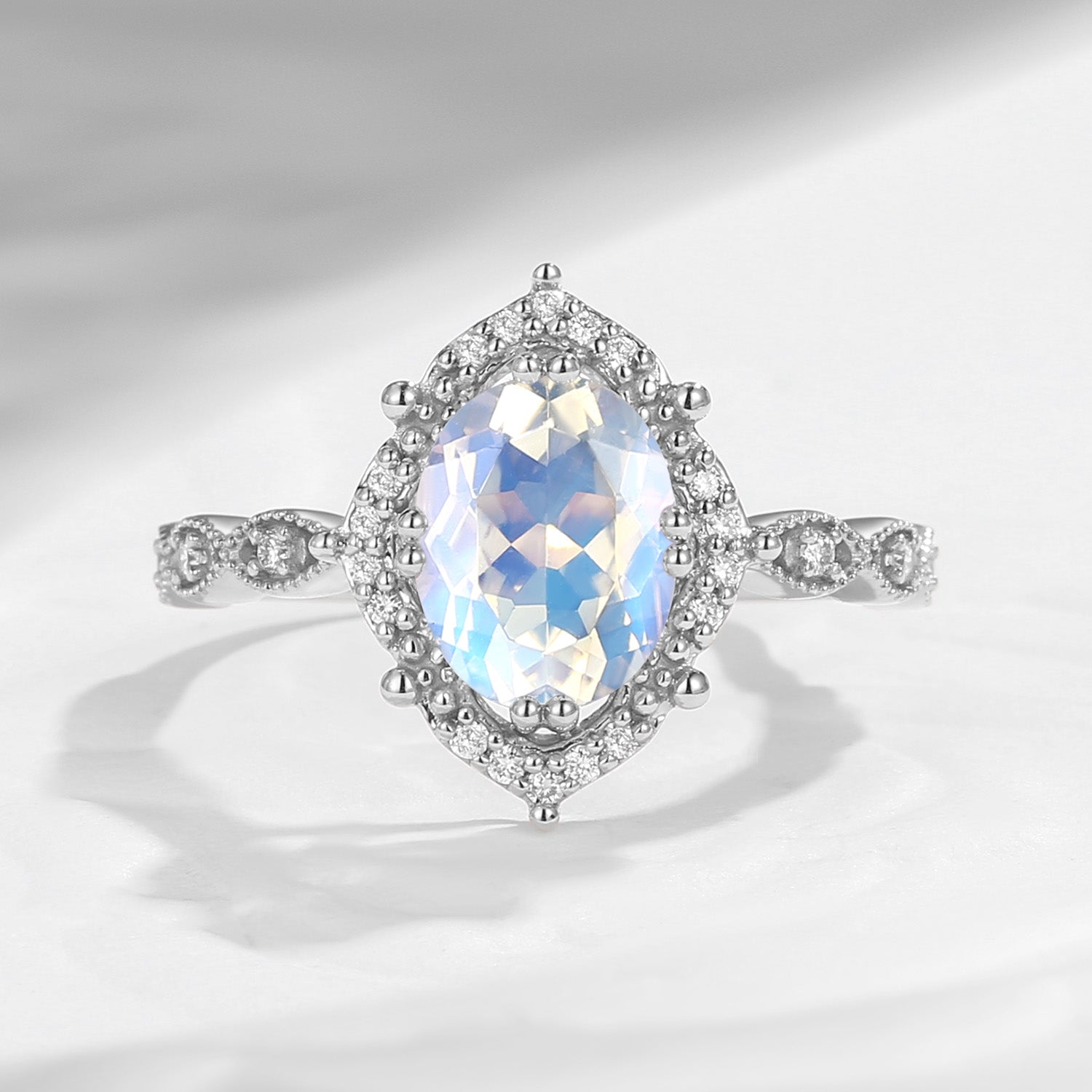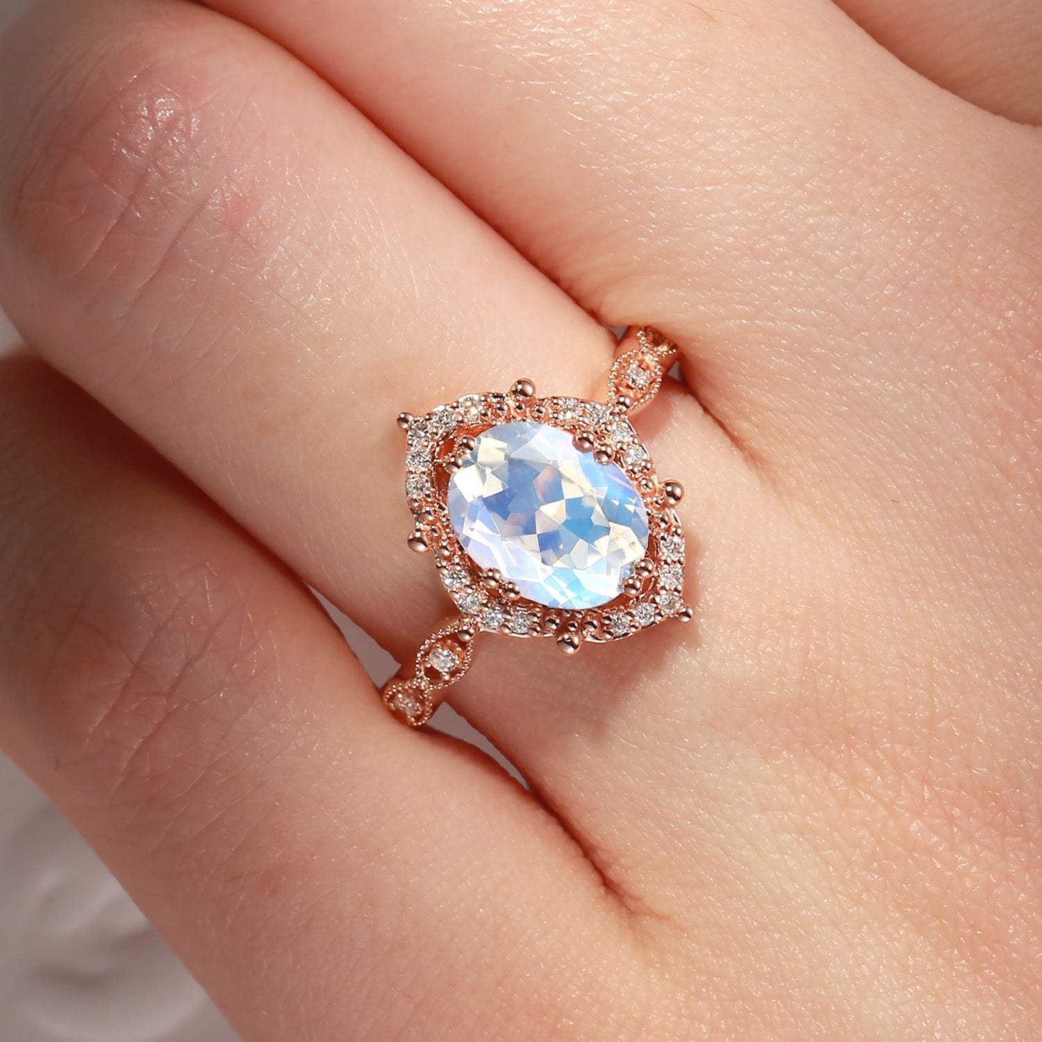 Vingtage Style Oval Moonstone Engagement Ring 1ct