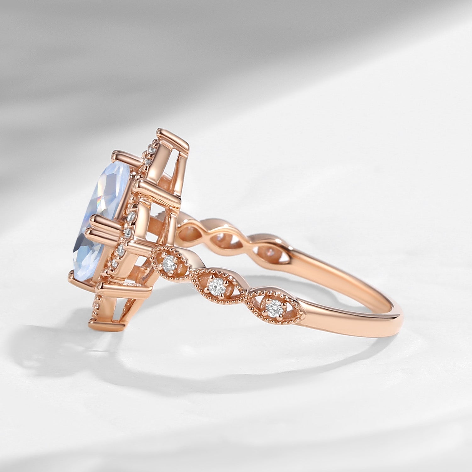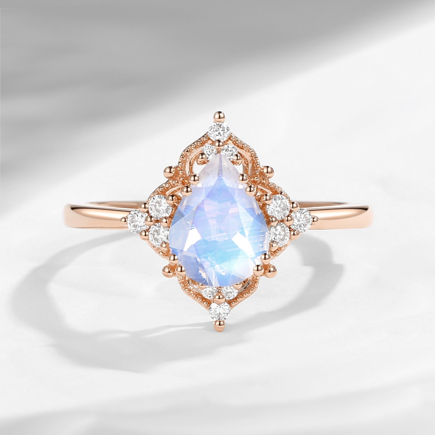 Vintage Inspired Pear Shaped Moonstone Engagement Ring