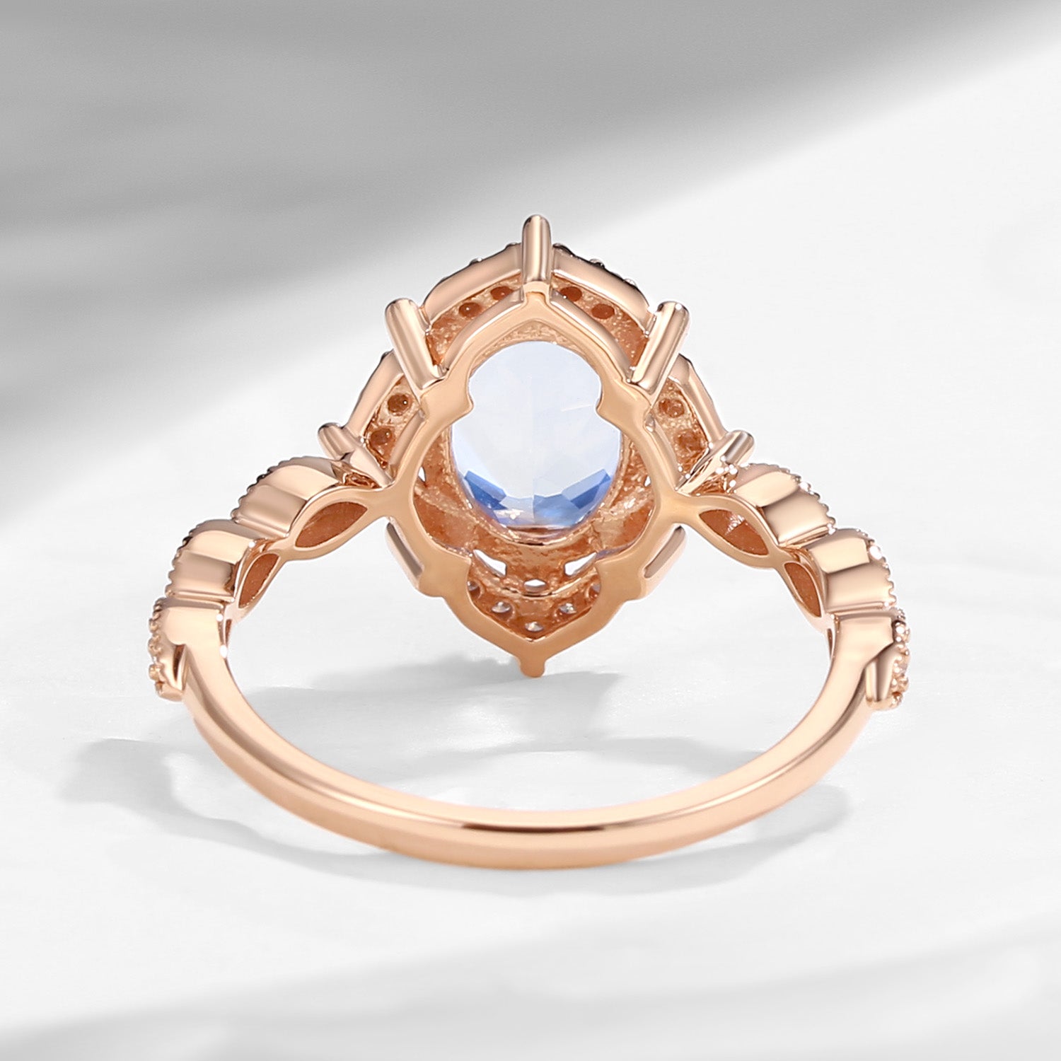 Unique Oval Cut Vine Moonstone Art Deco Engagement Ring