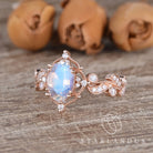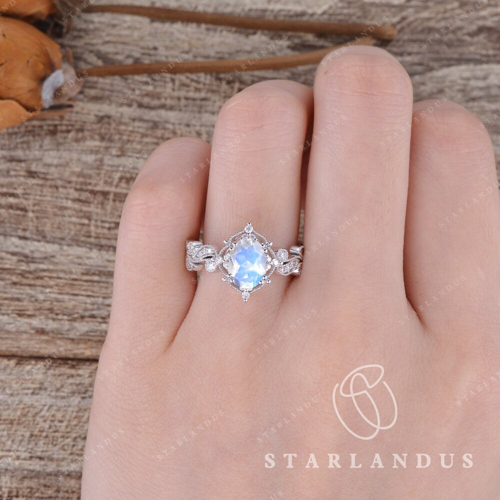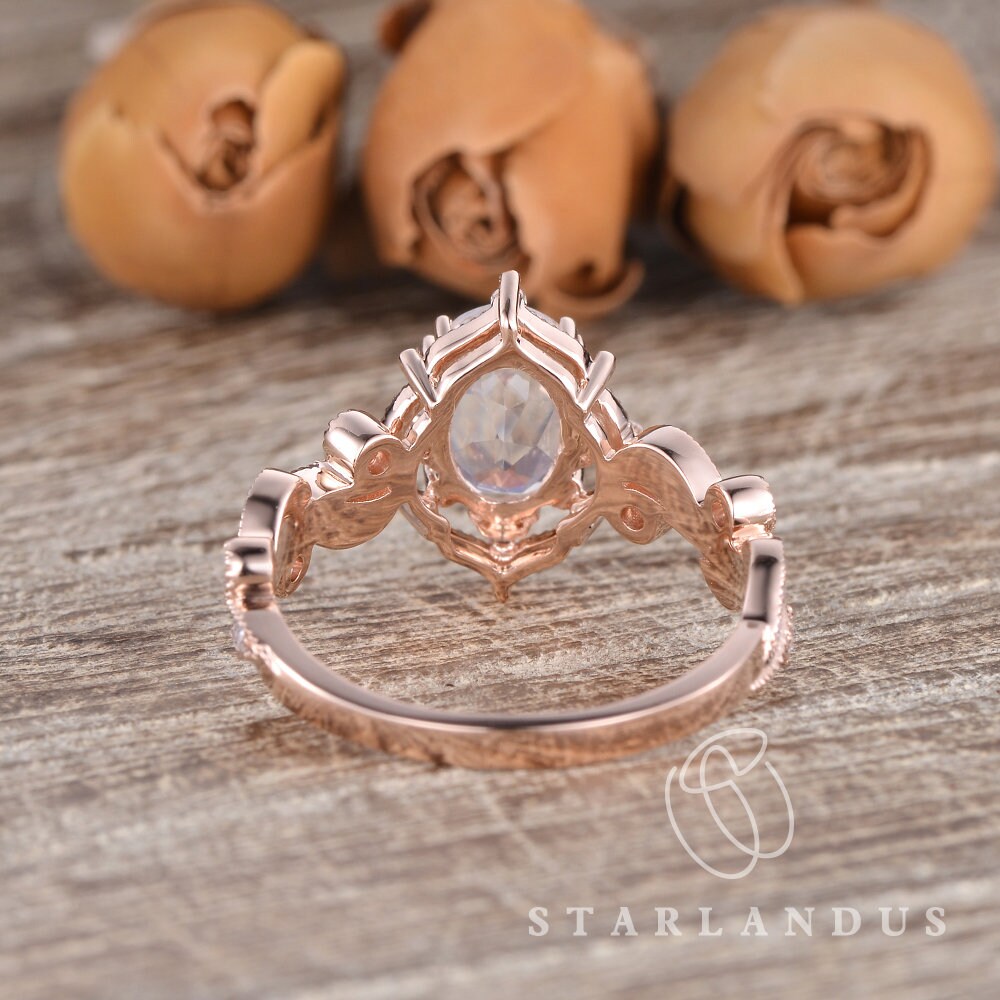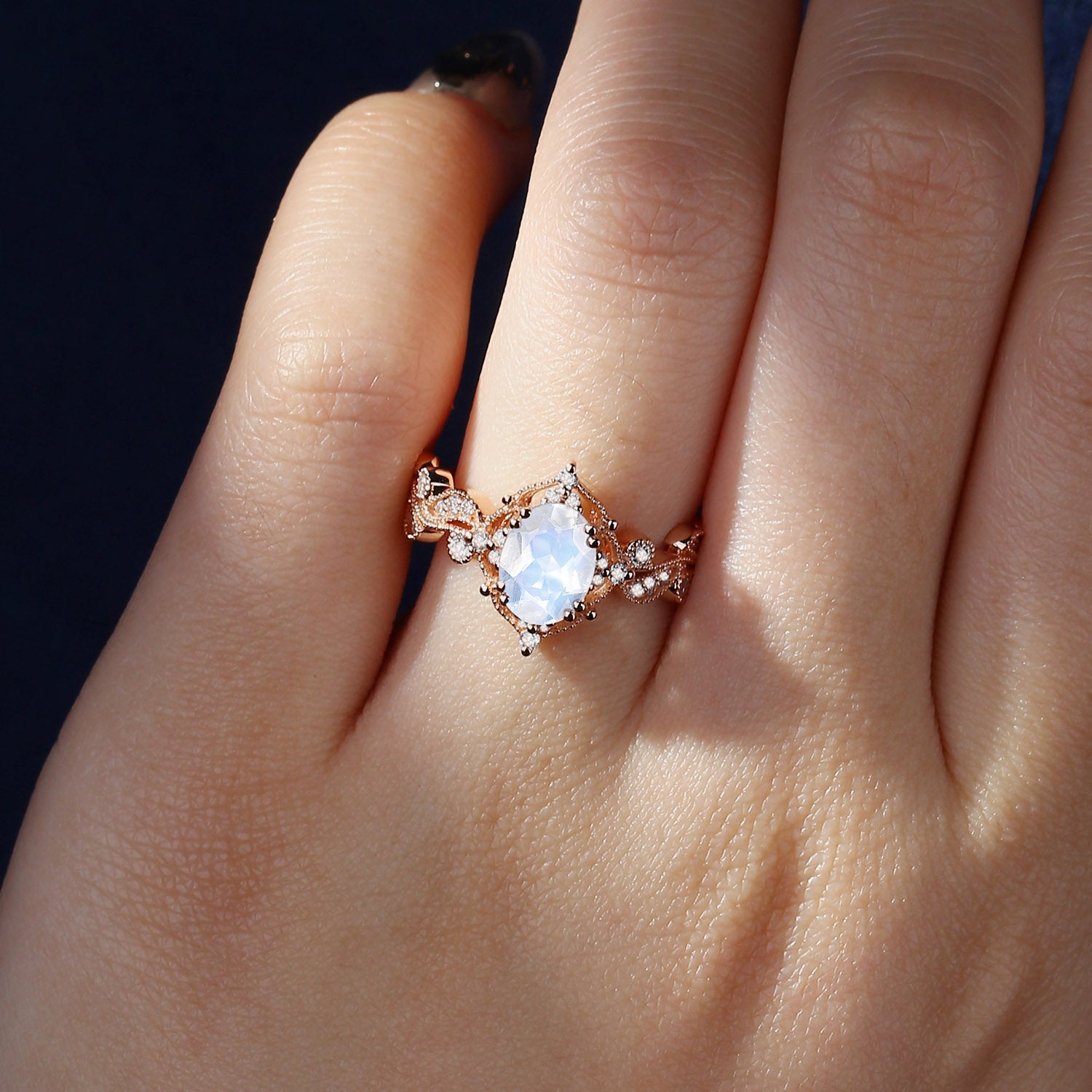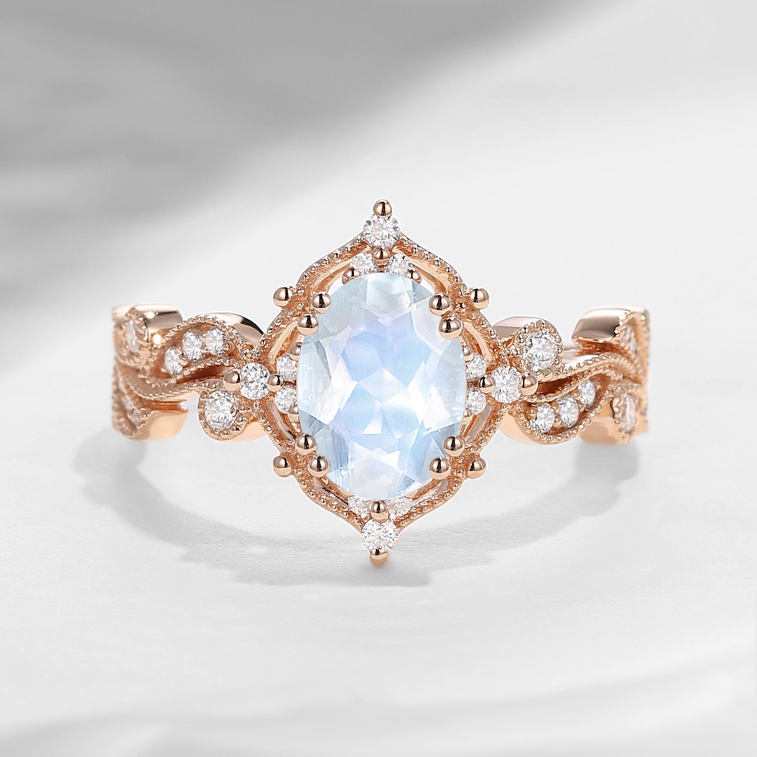 Unique Oval Cut Vine Moonstone Art Deco Engagement Ring