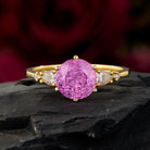 Sparkling Round Cut Pink Sapphire Ring in Gold Icy Elegance Statement Engagement Ring