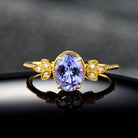 Amethyst Reverie Oval Cut Tanzanite Ring in Gold Delicate Clover Style Statement Engagement Ring