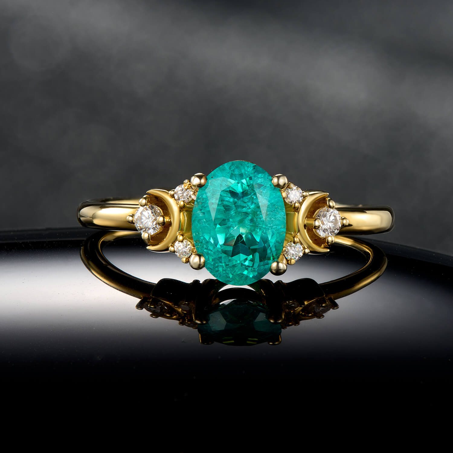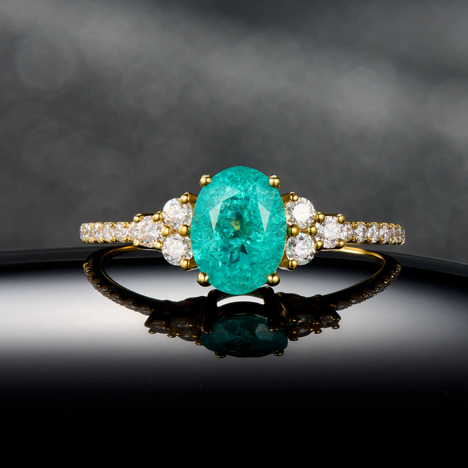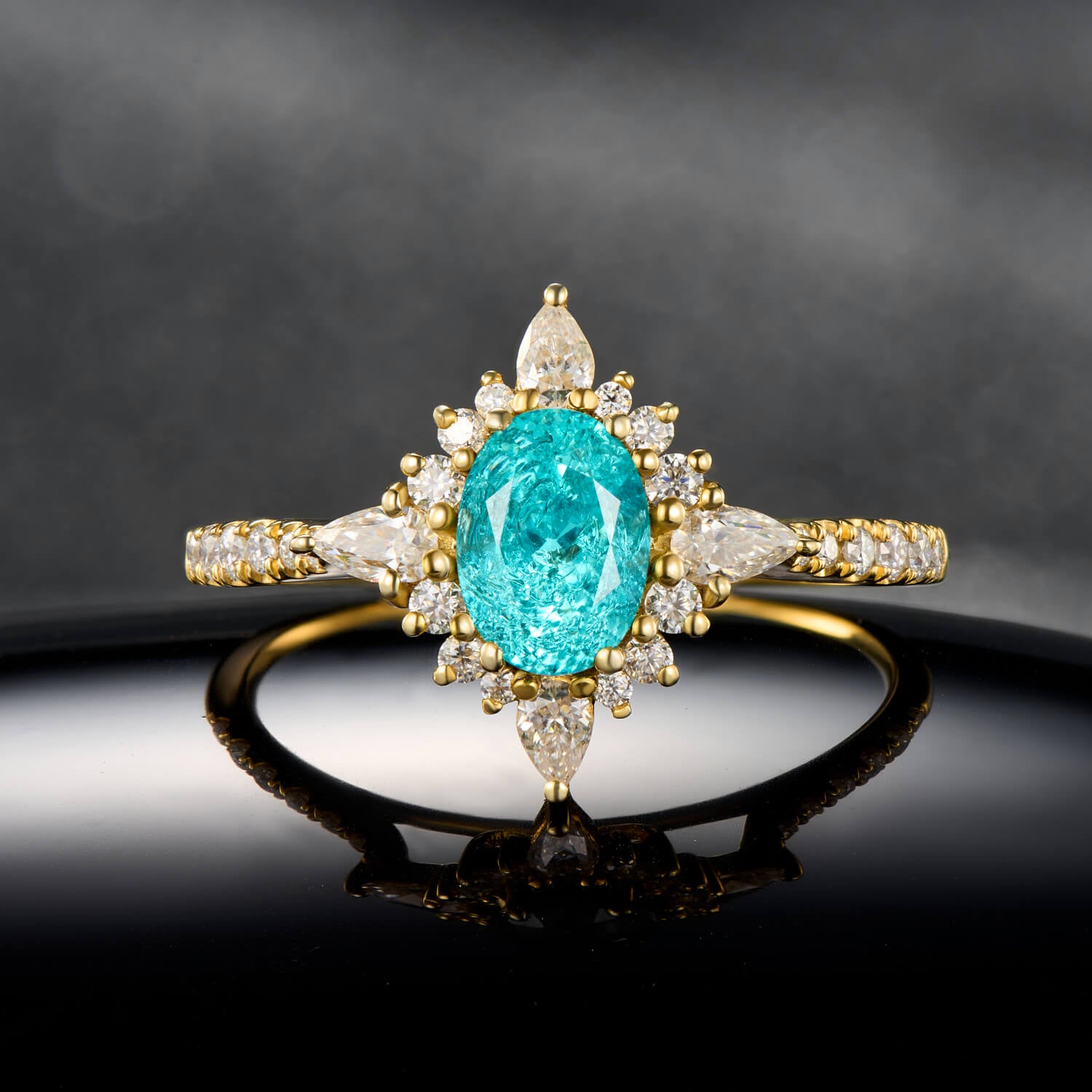 Electric Lagoon Brilliance Oval Cut Paraiba Ring Gold Six-Prong Symmetrical Style Statement Engagement Ring