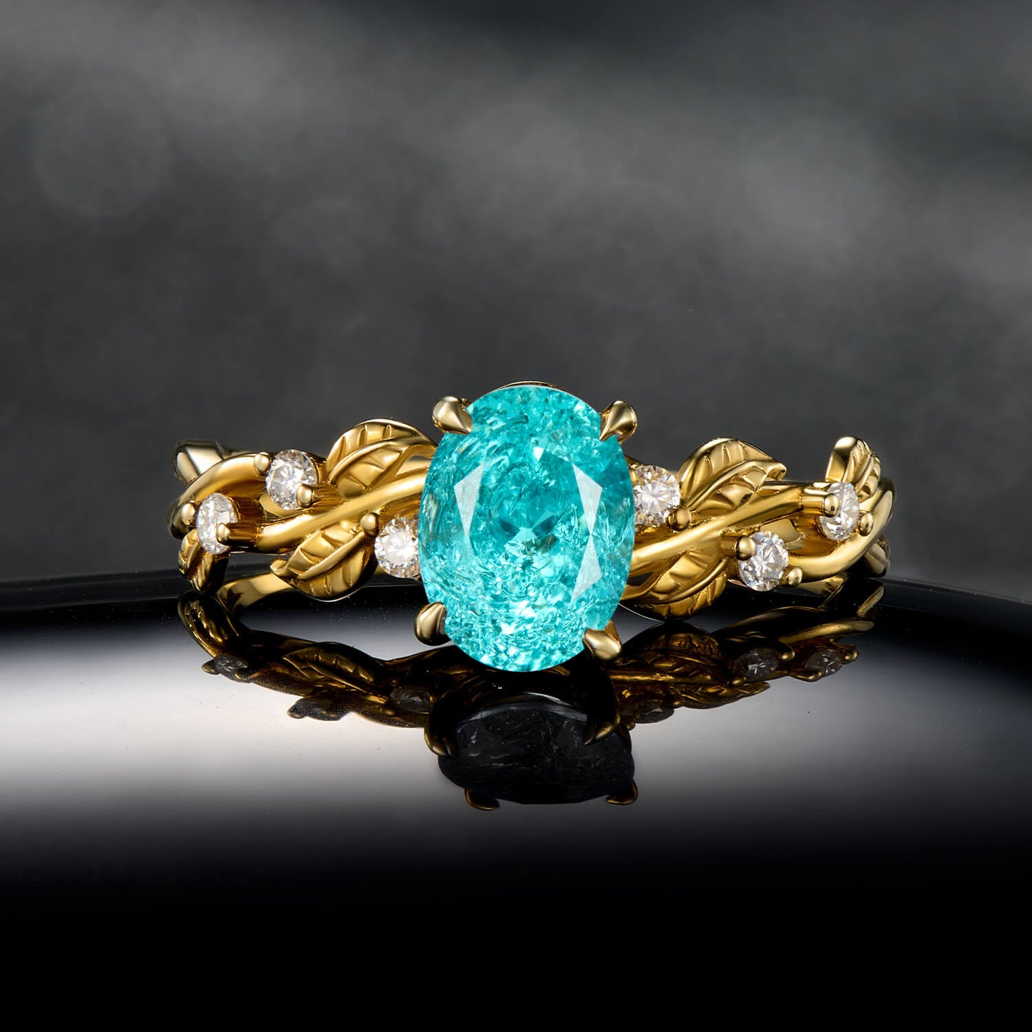 Ocean Gleam Oval Cut Paraíba Tourmaline Ring in Gold Branch Style Elegant Statement Engagement Ring