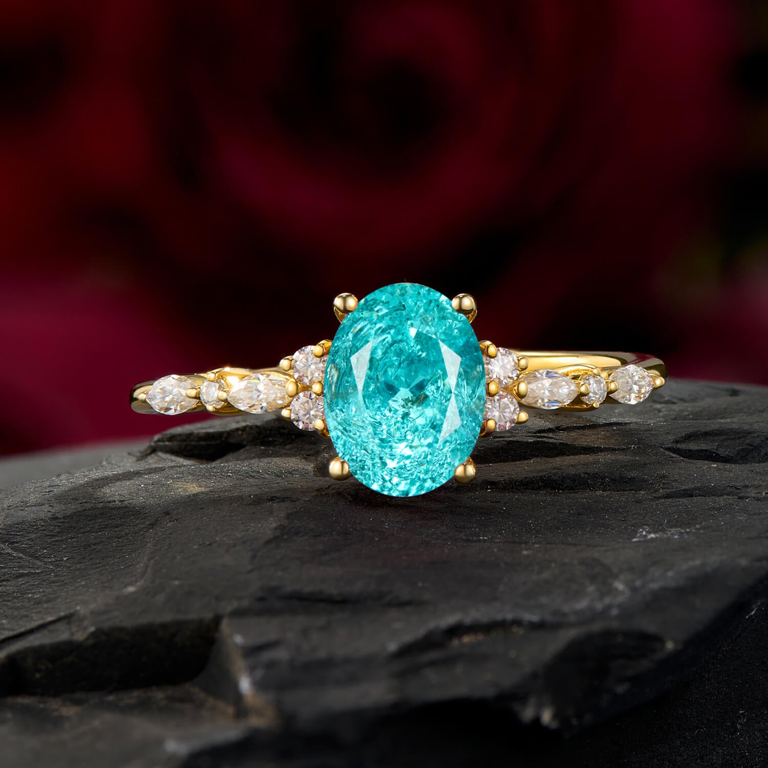 Neon Tide Oval Cut Paraiba Tourmaline Solitaire Ring in Gold Vintage Style Statement Engagement Ring