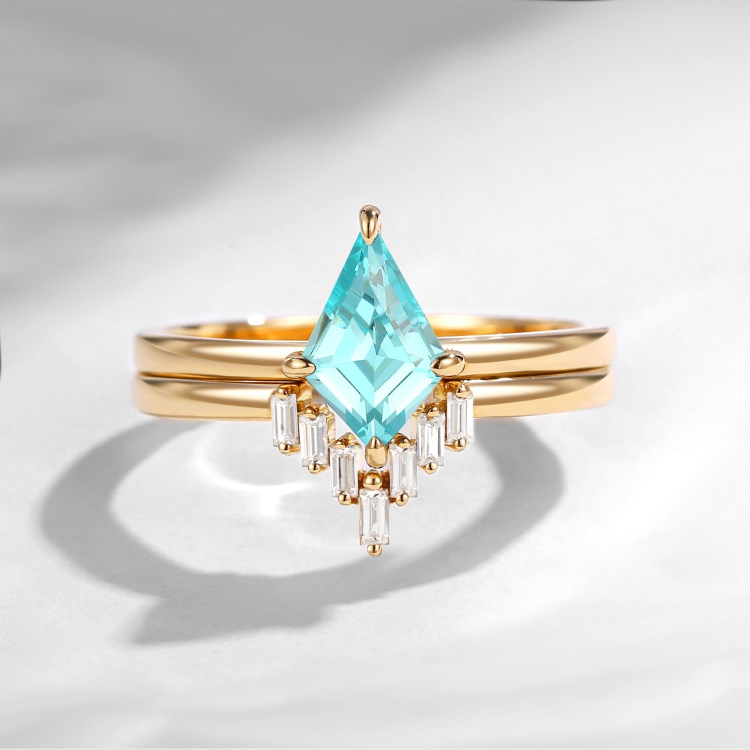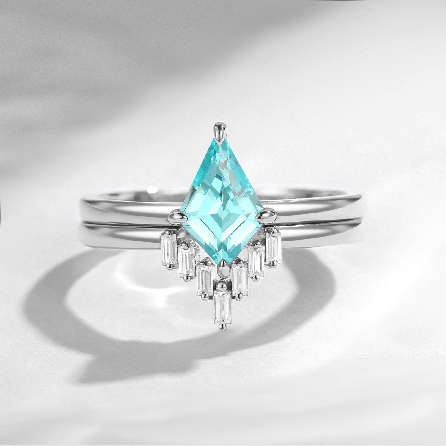 Classic Kite Cut Lab Paraiba Engagement Ring 2pcs