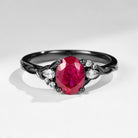 Refined yet intense, this Oval Cut Ruby Engagement Ring is crafted in sleek black gold, offering a striking contrast that enhances the richness of the center stone. Its clean silhouette and dark-toned metal create a sense of quiet power, making the design feel both modern and timeless.