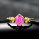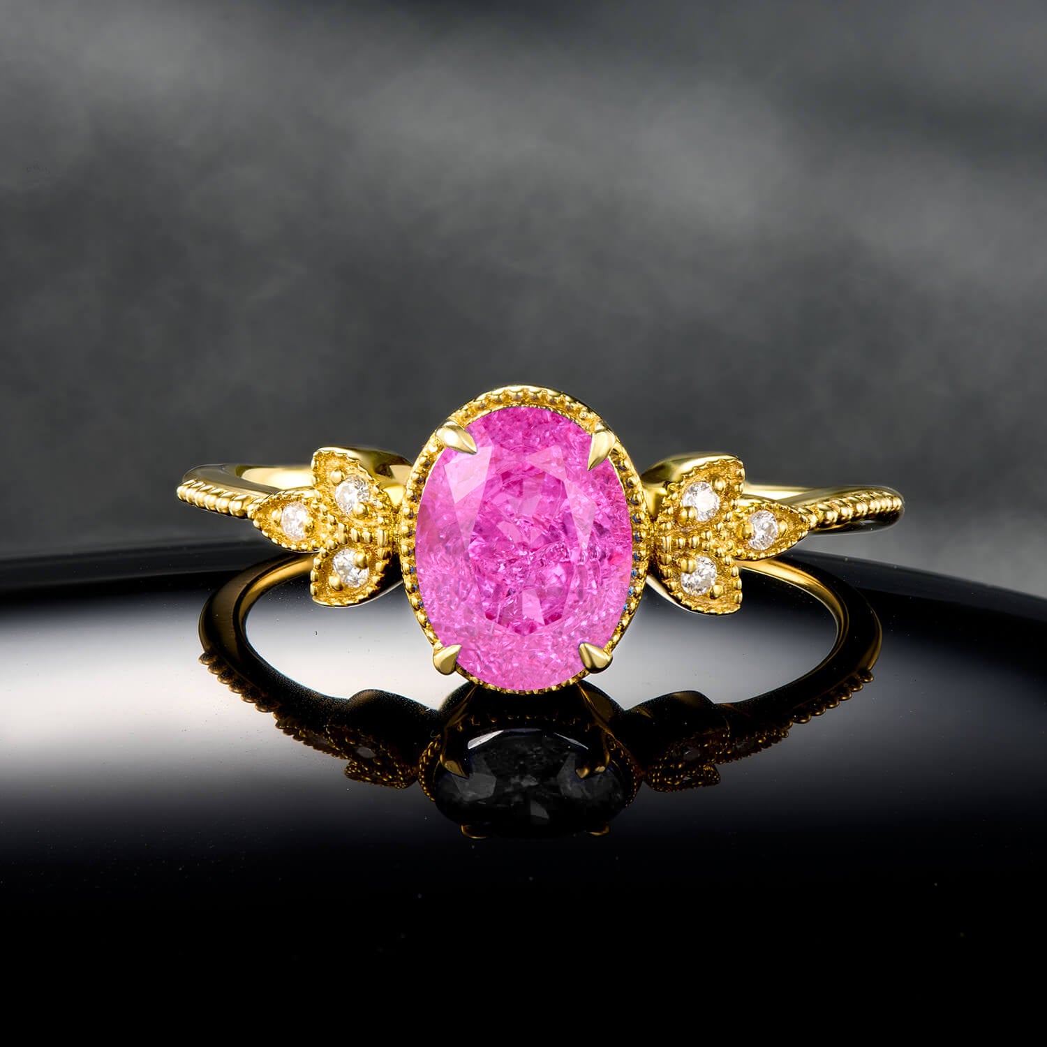 Soft and romantic in hue yet radiant in sparkle, this Blushing Dawn Oval Cut Rose Blue Sapphire Ring evokes the gentle shimmer of rosy dawn with a nature-inspired, whimsical design. Crafted in luminous gold, the ring blends subtle artistic detail with modern sophistication, creating a piece that is both enchanting and versatile.