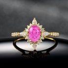 Blushing Frost Oval Cut Rose Sapphire Ring in Gold Halo Style Statement Engagement Ring