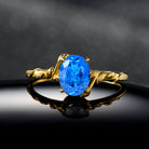 Glacier Spark Oval Cut Crushed Ice Sapphire Solitaire Ring in Gold Vintage Style Statement Engagement Ring