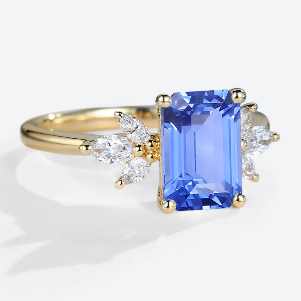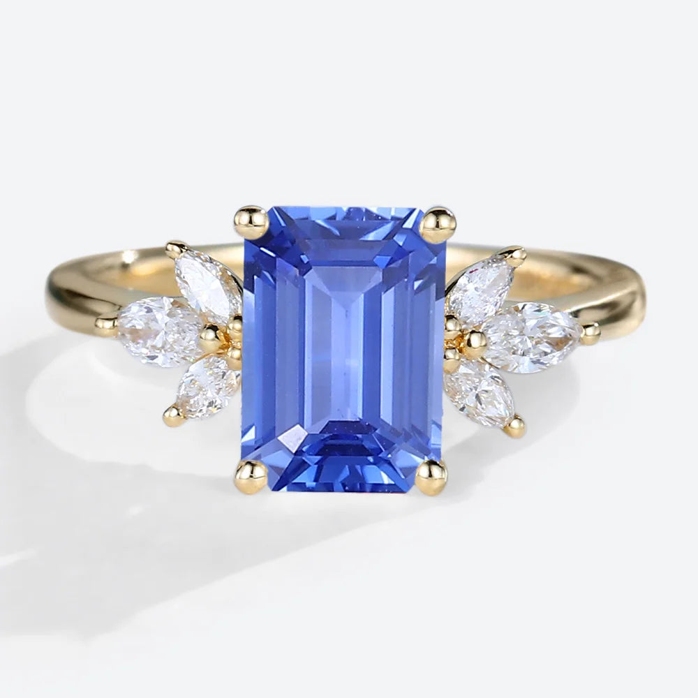 Emerald Cut Cornflower Sapphire Cluster Engagement Ring Classic Elegance Bridal Ring