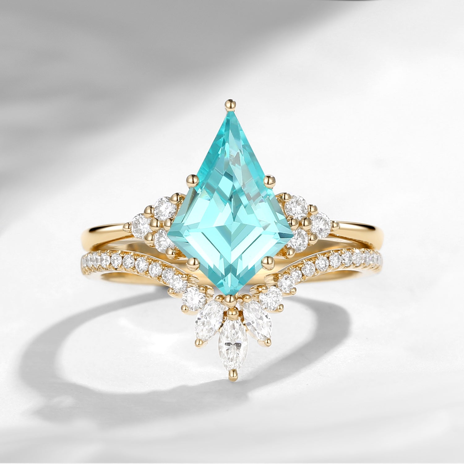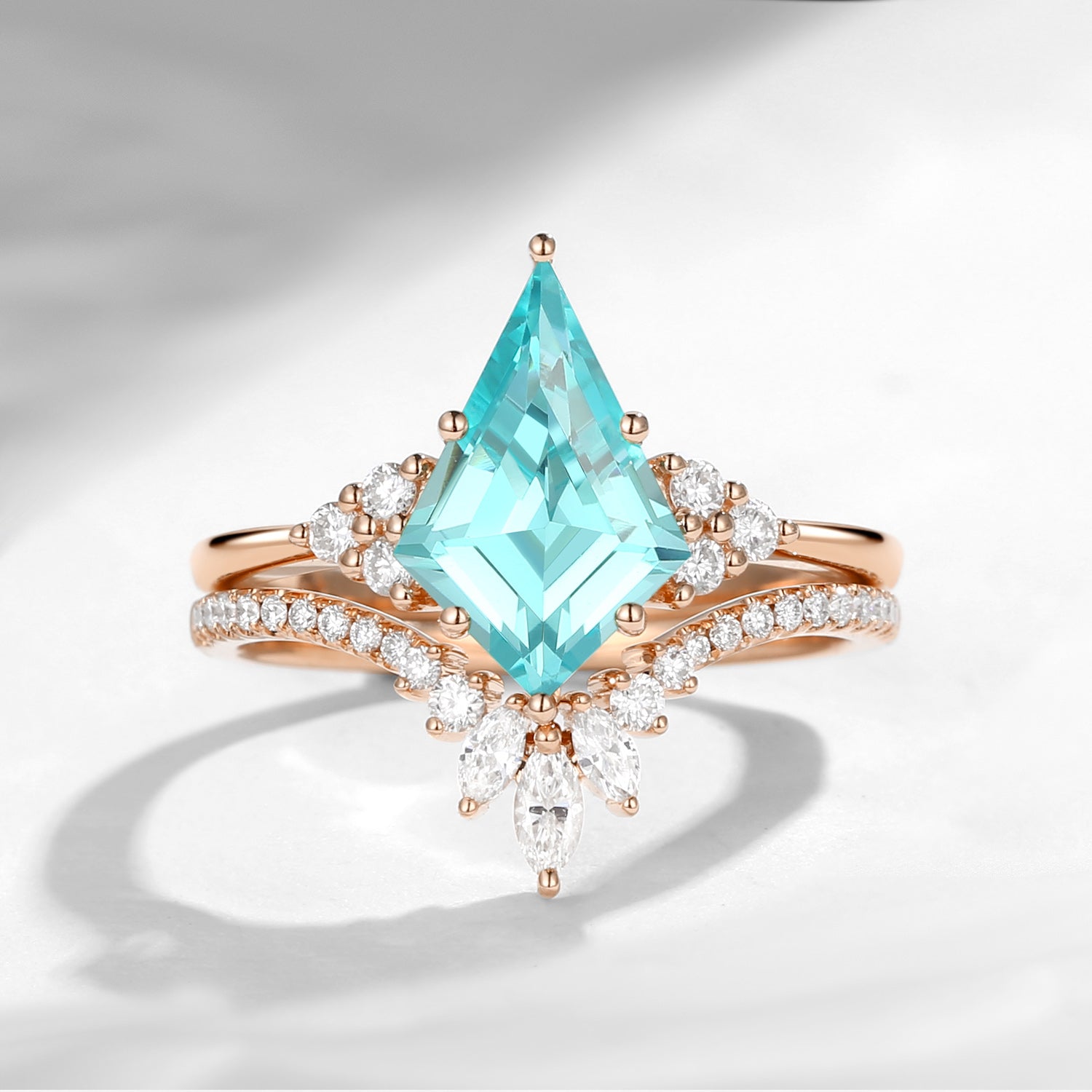 Kite Cut Lab Paraiba Classic Cluster Engagement Ring Set 2pcs - Electra