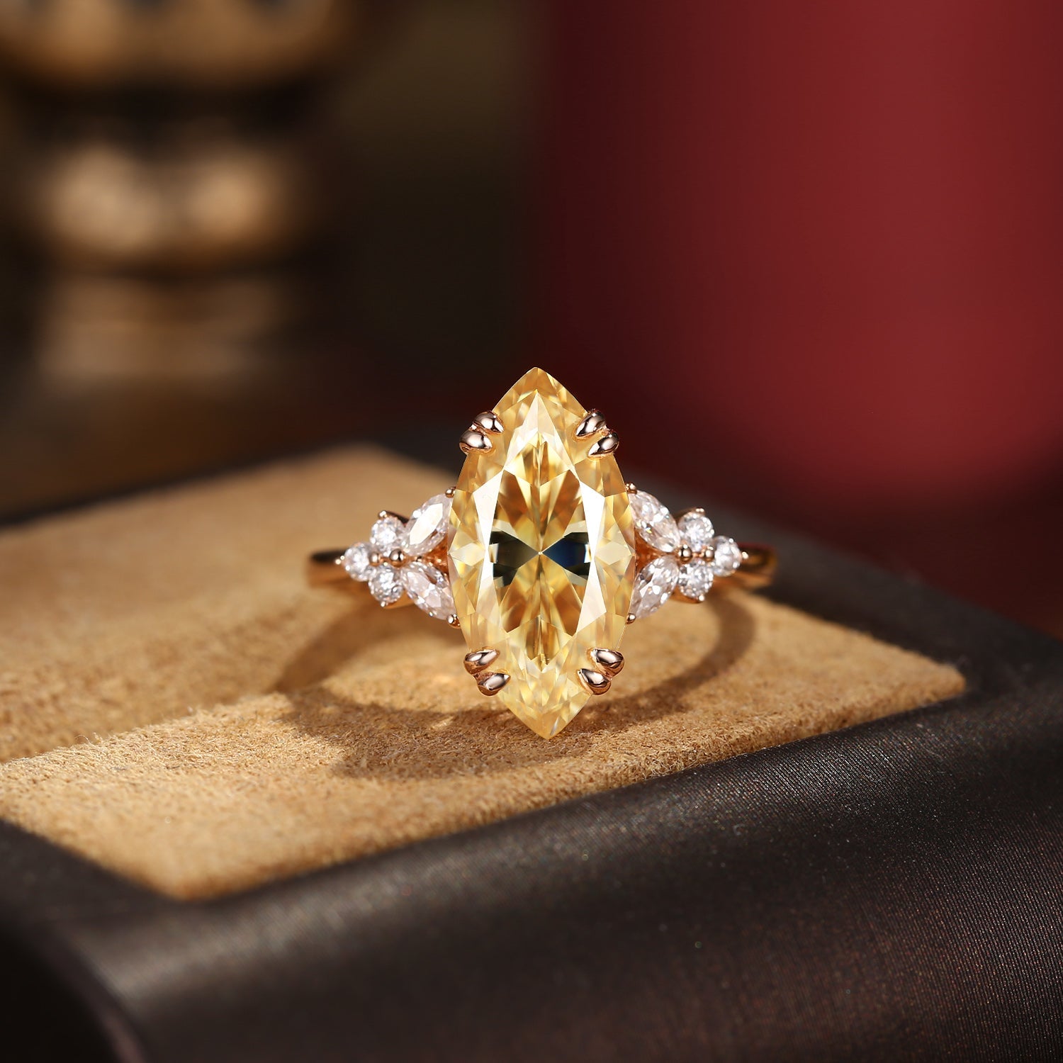 Marquise Cut Yellow Moissanite Engagement Ring - Fairy Butterfly