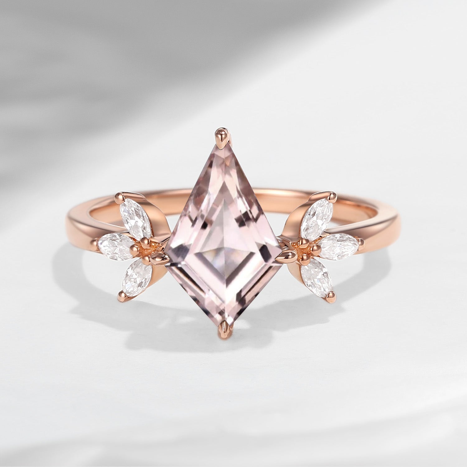 Unique Kite Cut Morganite Butterfly Engagement Ring