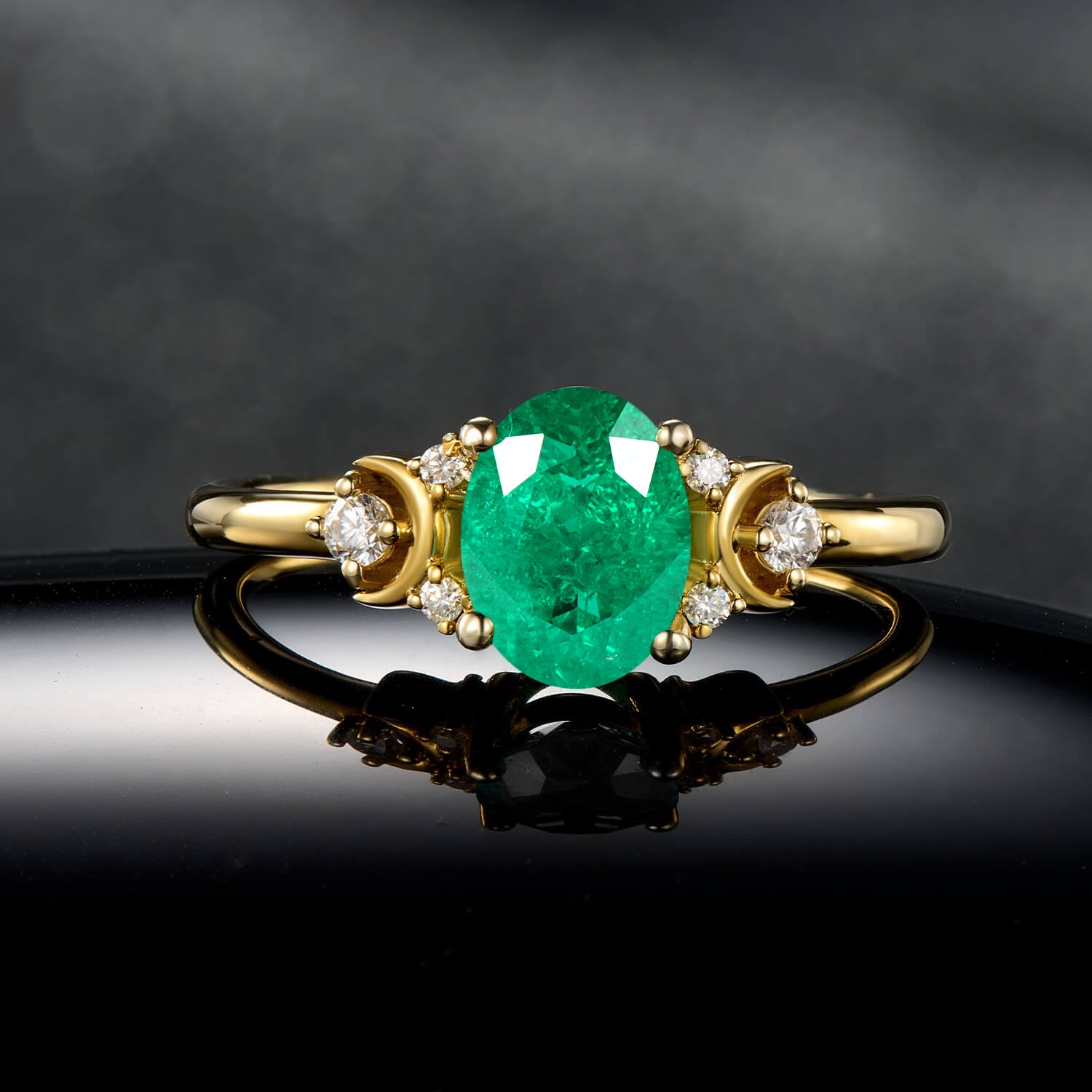 Radiant Obsidian Oval Cut Tsavorite Gemstone Yellow Gold Engagement Ring