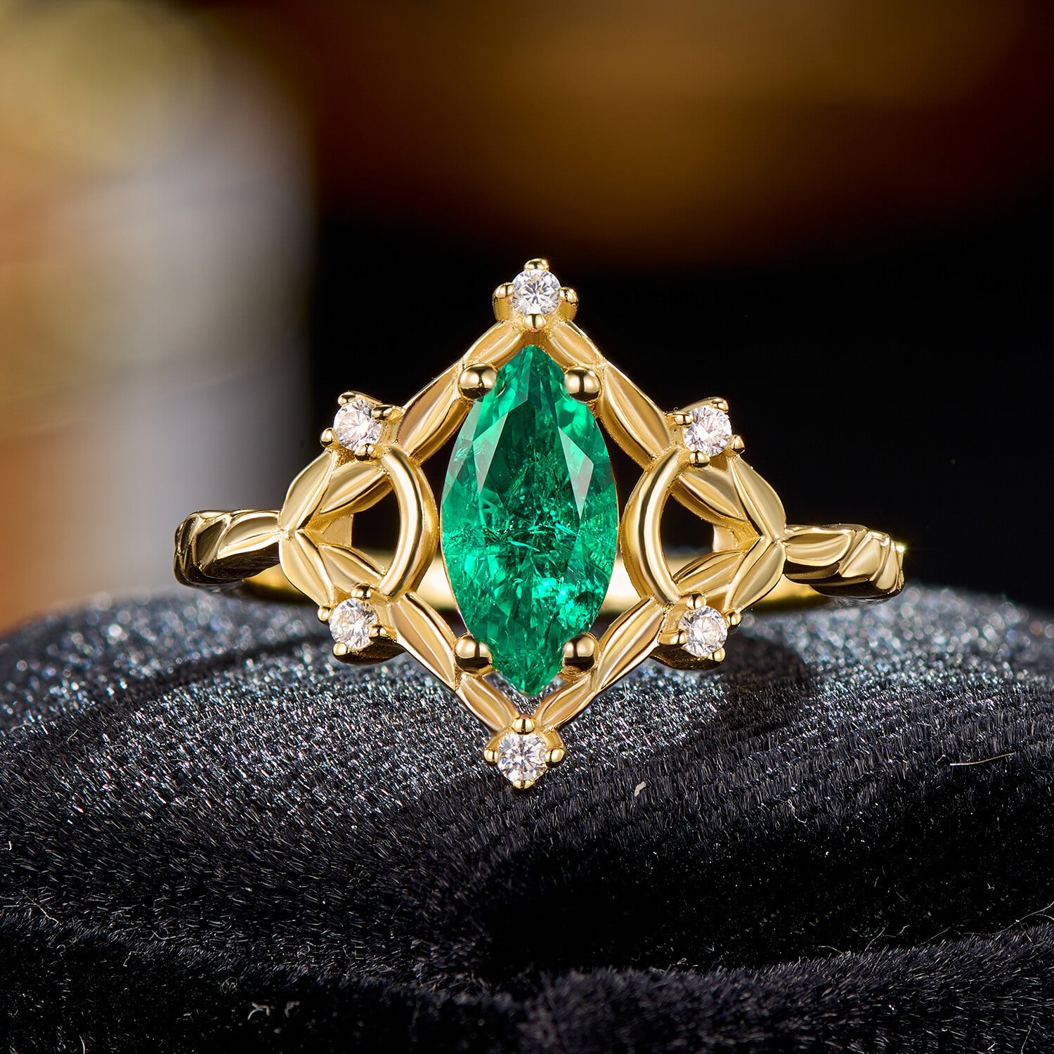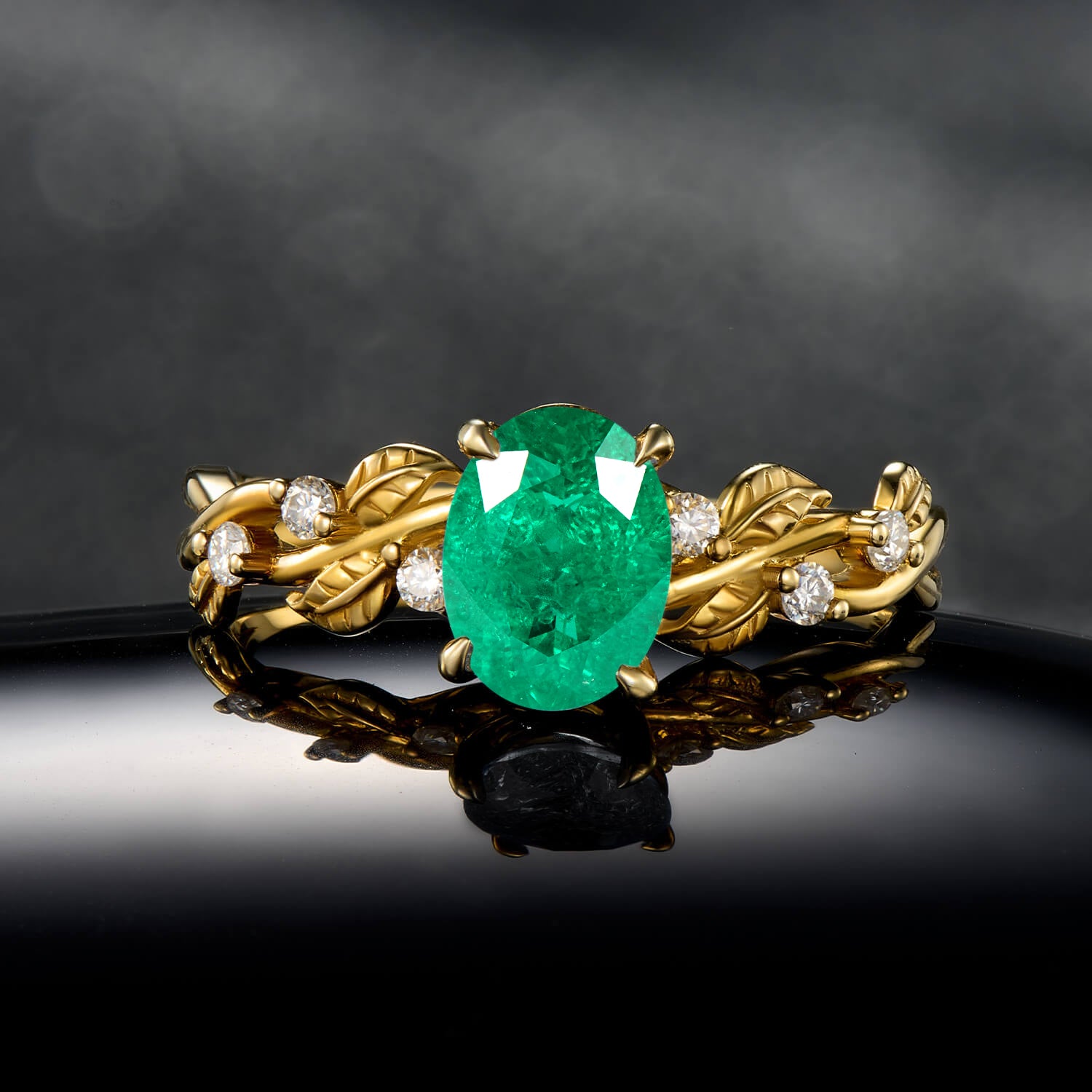 Lush Forest Oval Cut Tsavorite Ring in Gold Branch Style Elegant Statement Engagement Ring