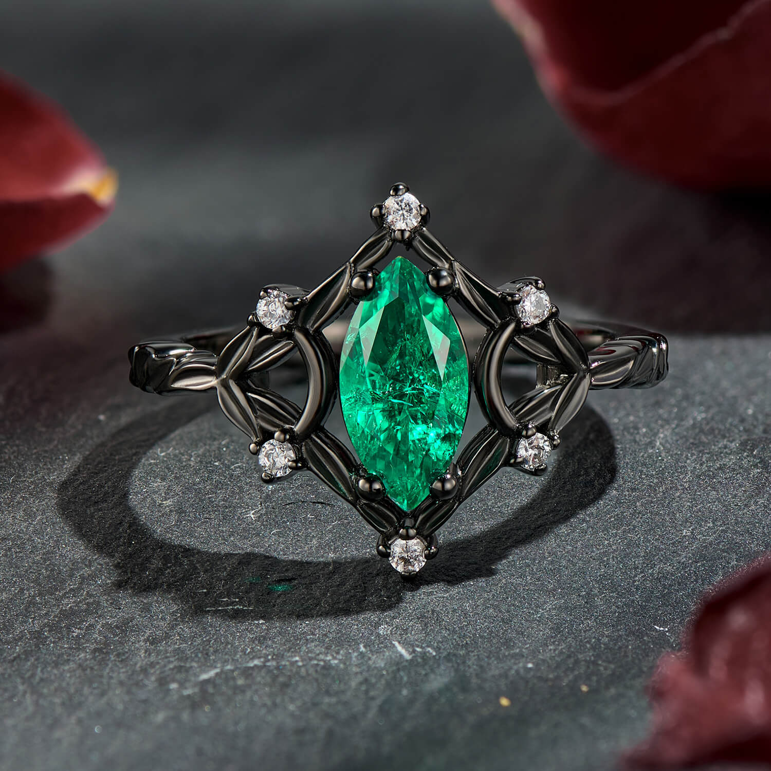 Nocturne Verdancy Marquise Cut Tsavorite Garnet Ice Ring in Black Gold Luxury Statement Engagement Ring