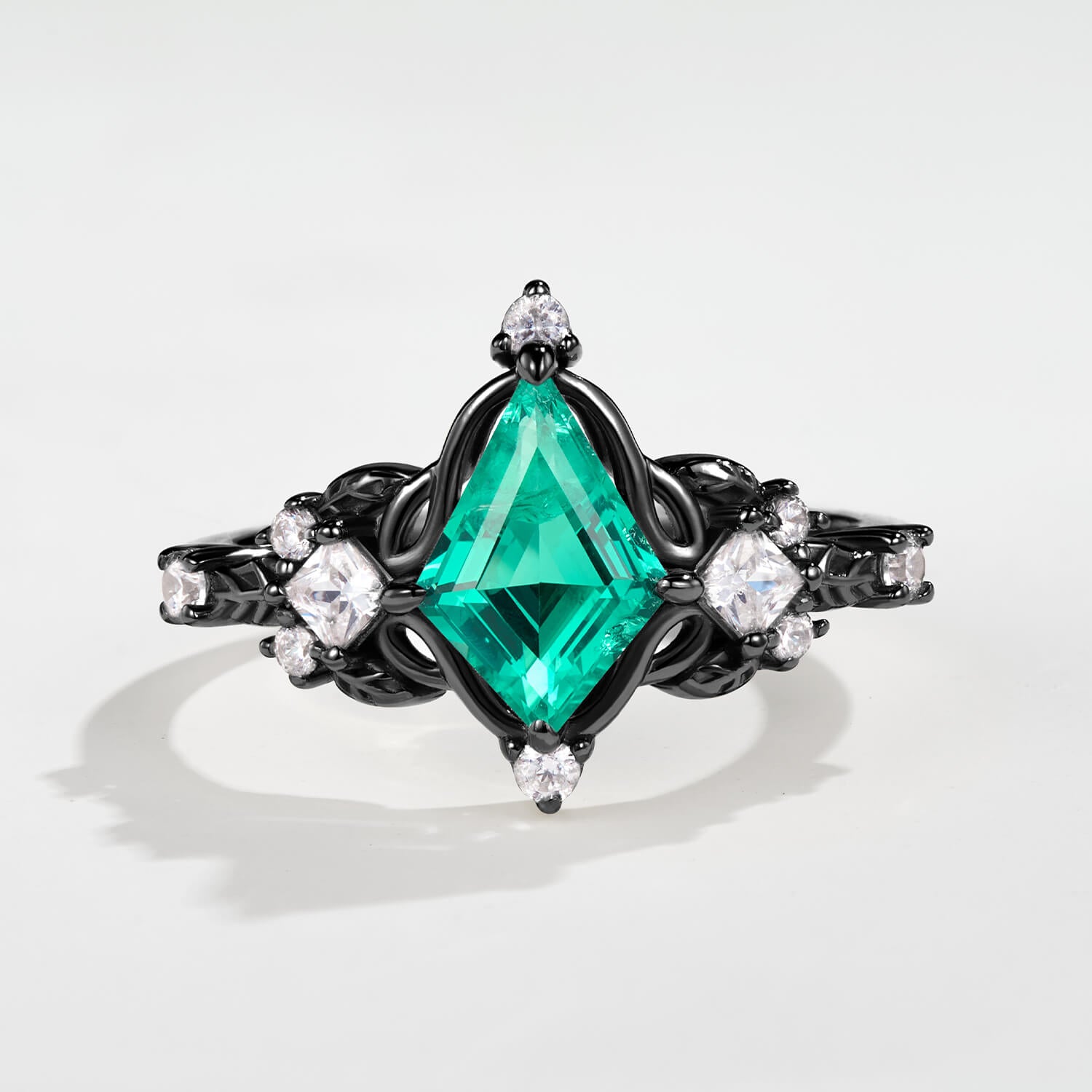 Verdant Eclipse Kite Cut Tsavorite Black Gold Engagement Ring