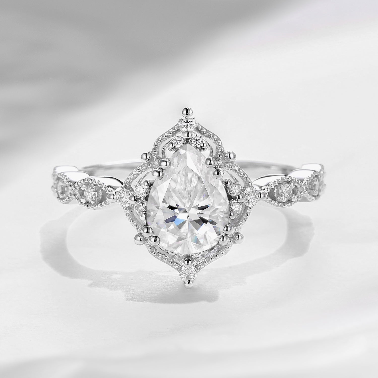 Vintage 1.5ct Pear Shaped Moissanite Engagement Ring