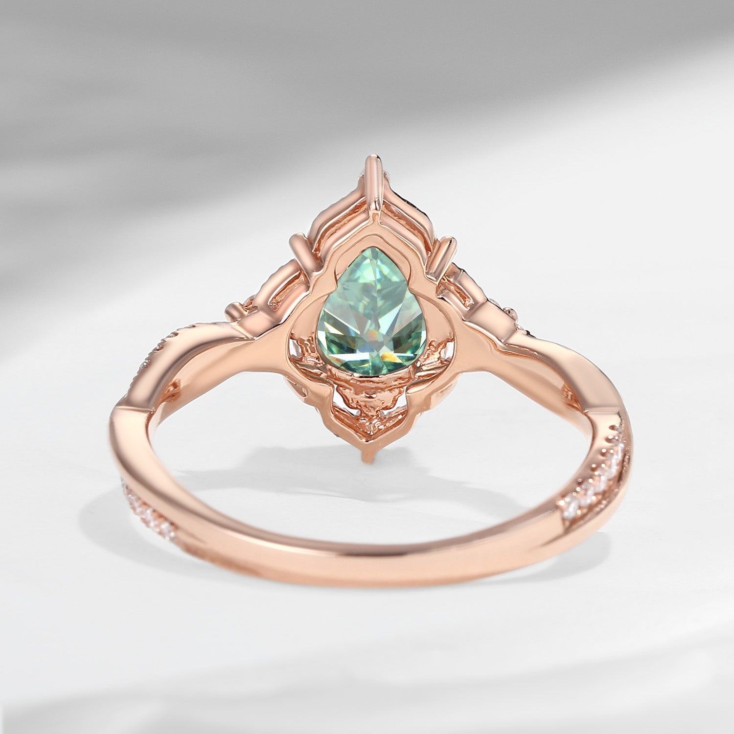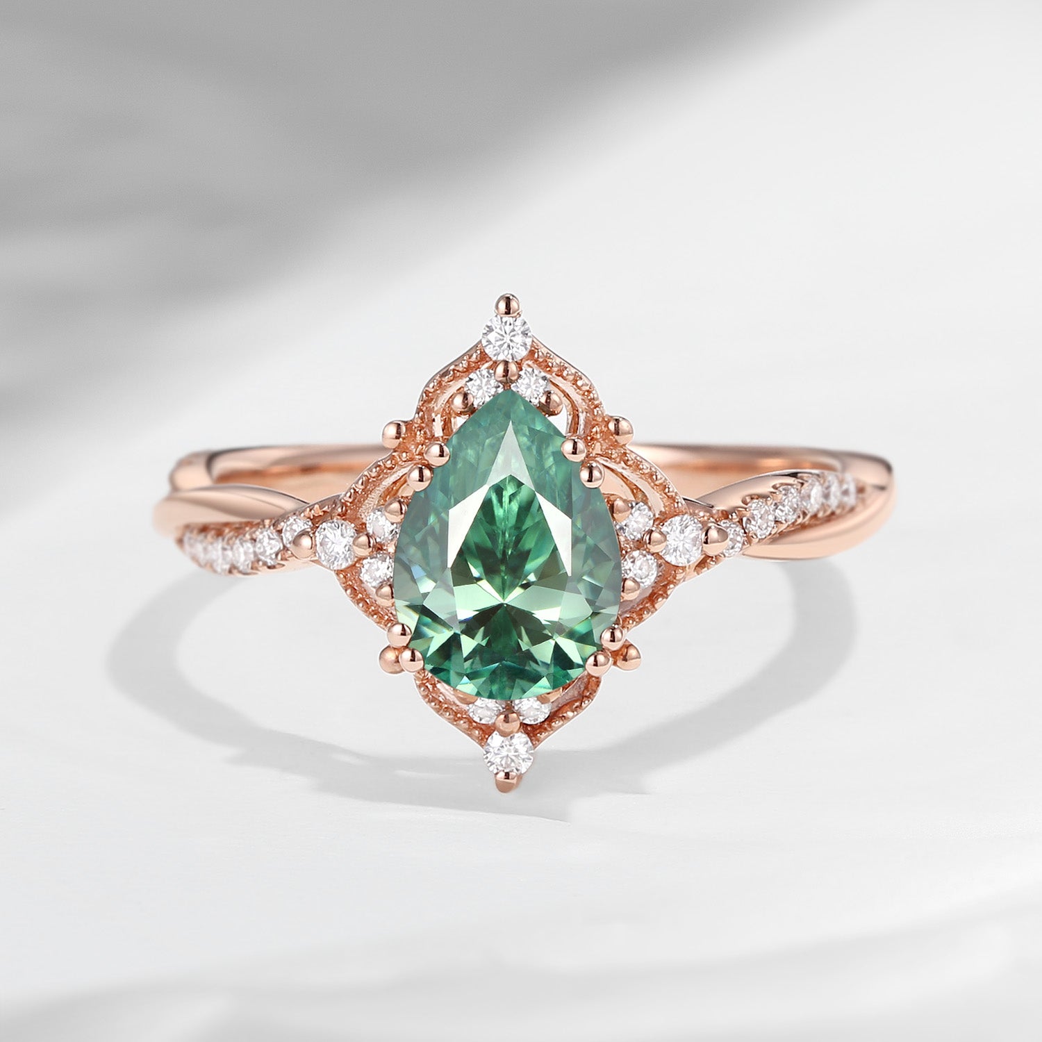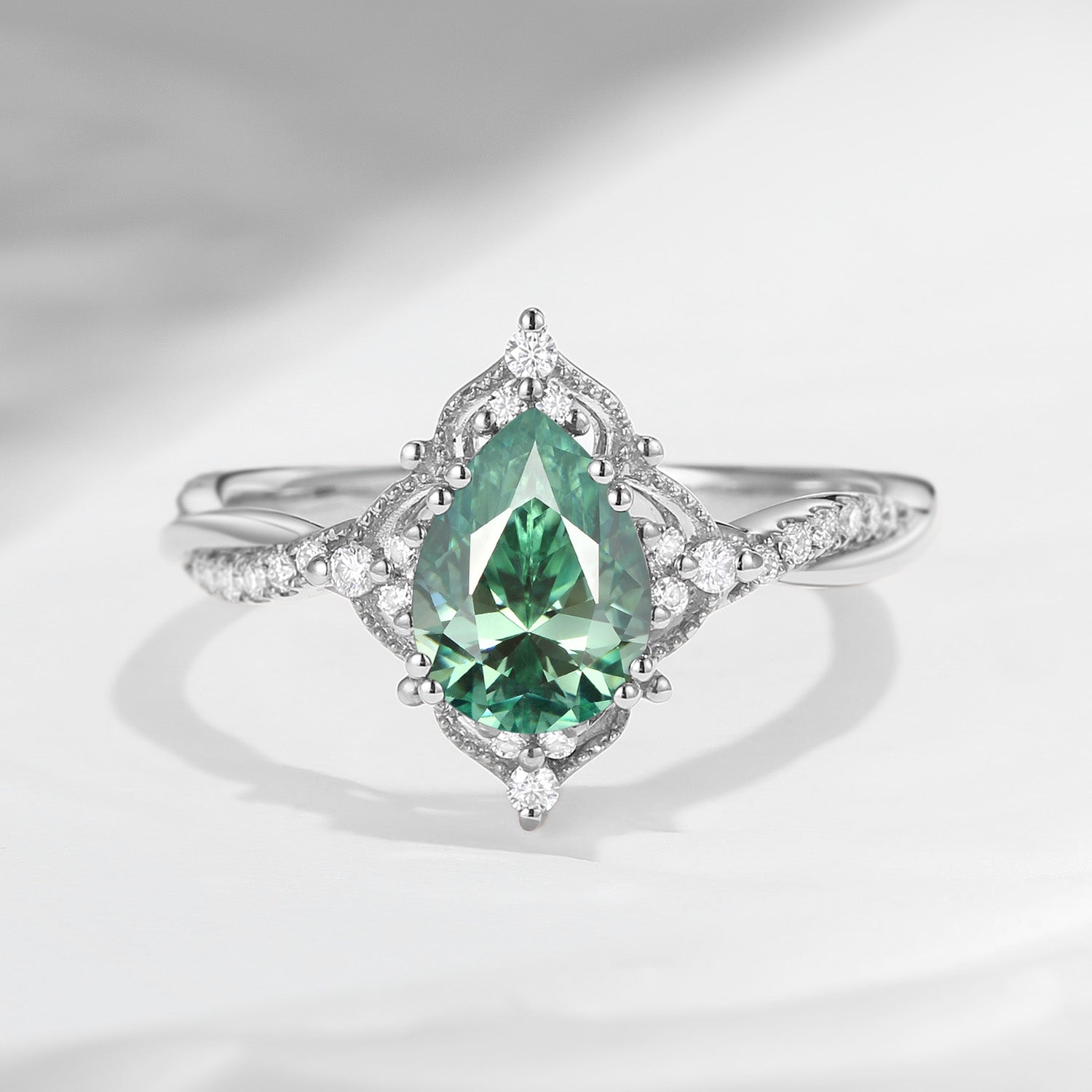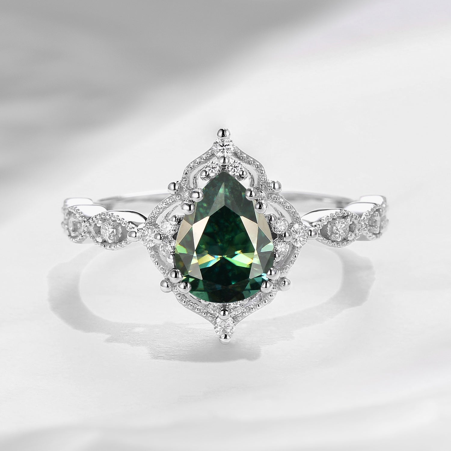 Vintage Pear Shaped Green Moissanite Engagement Ring