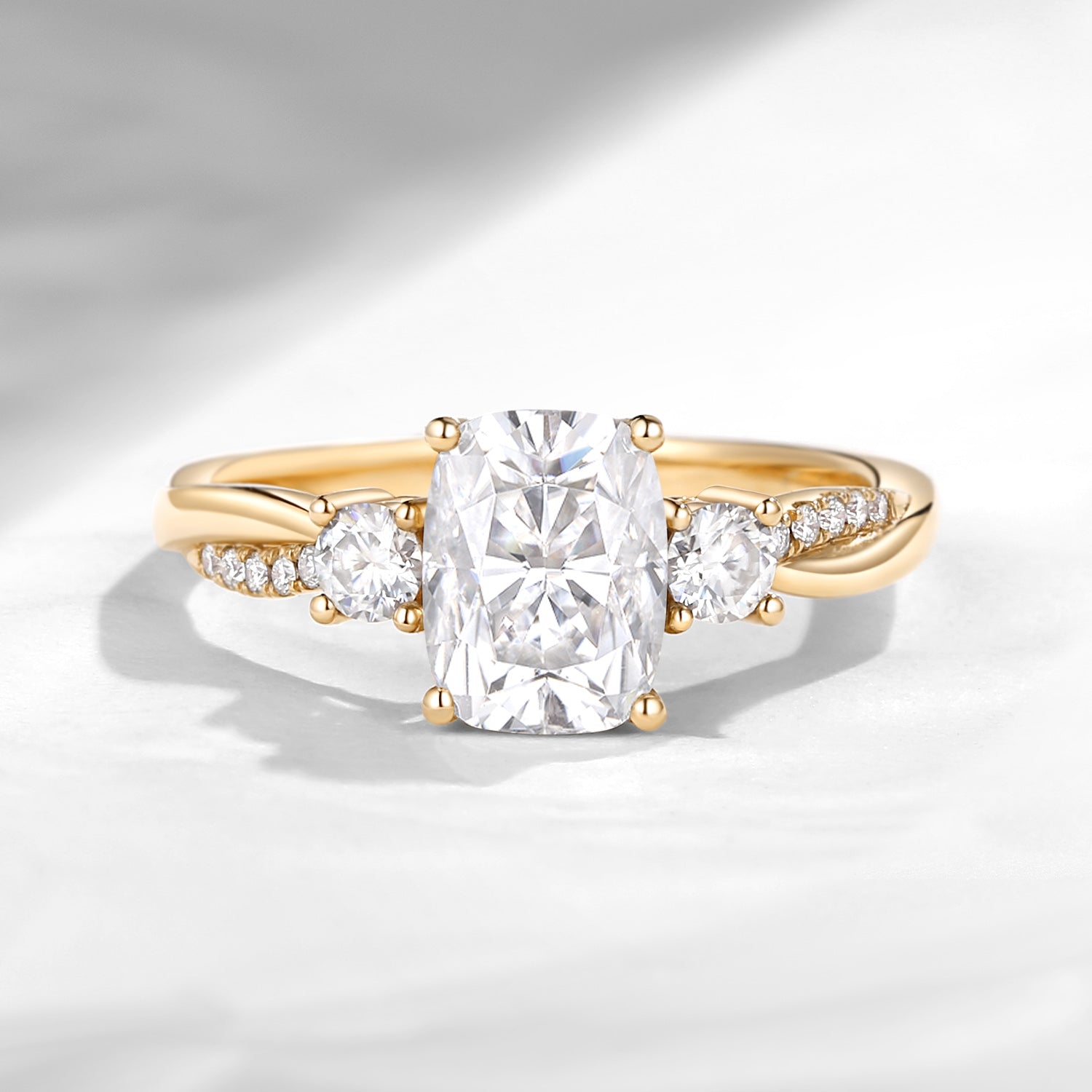 Twisted Cushion Cut Moissanite Three Stones Engagement Ring