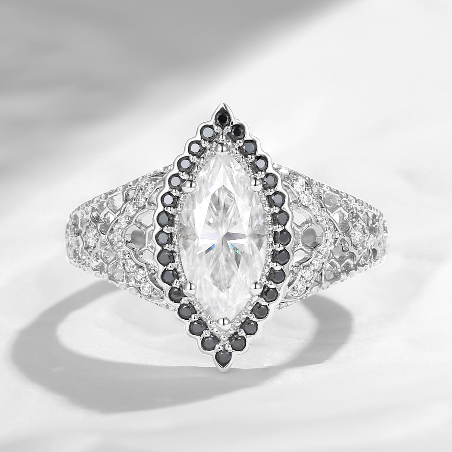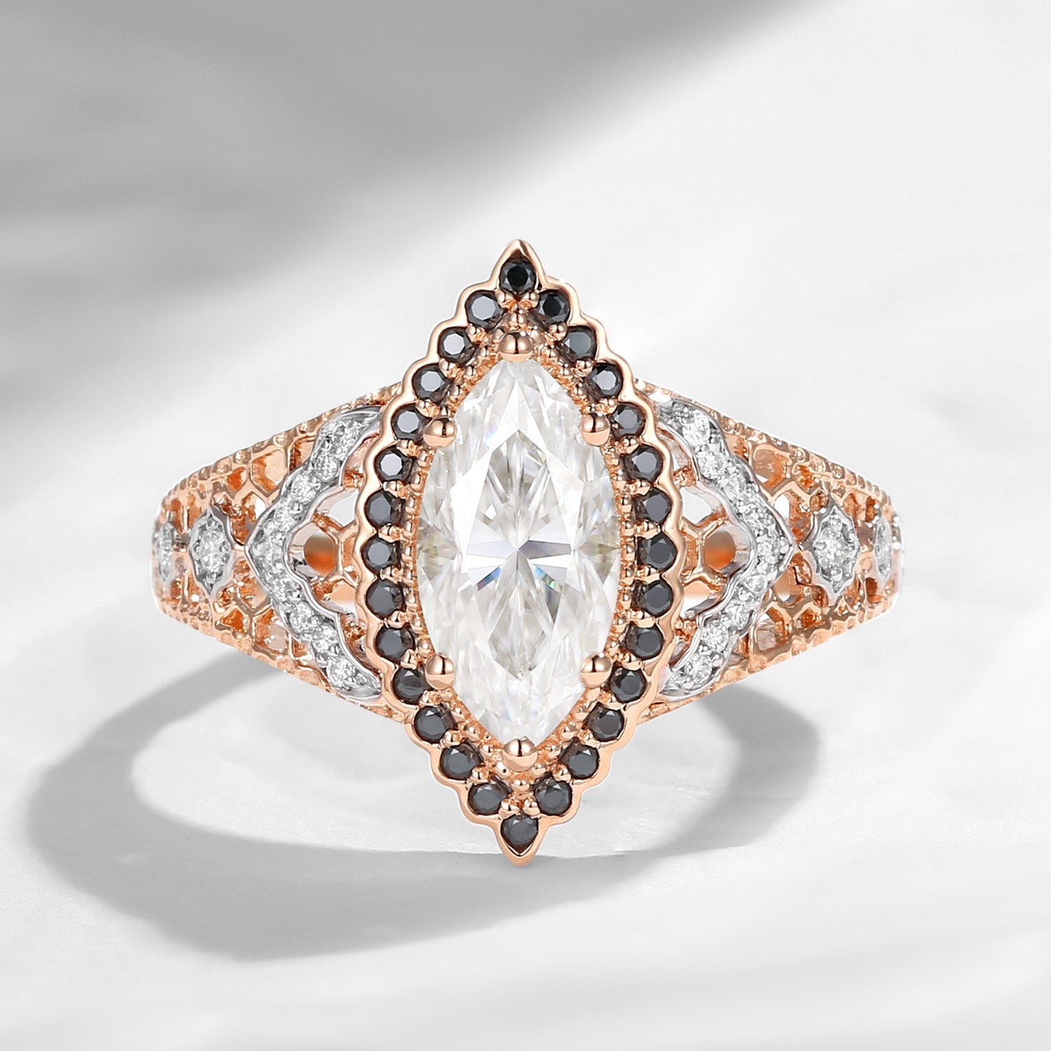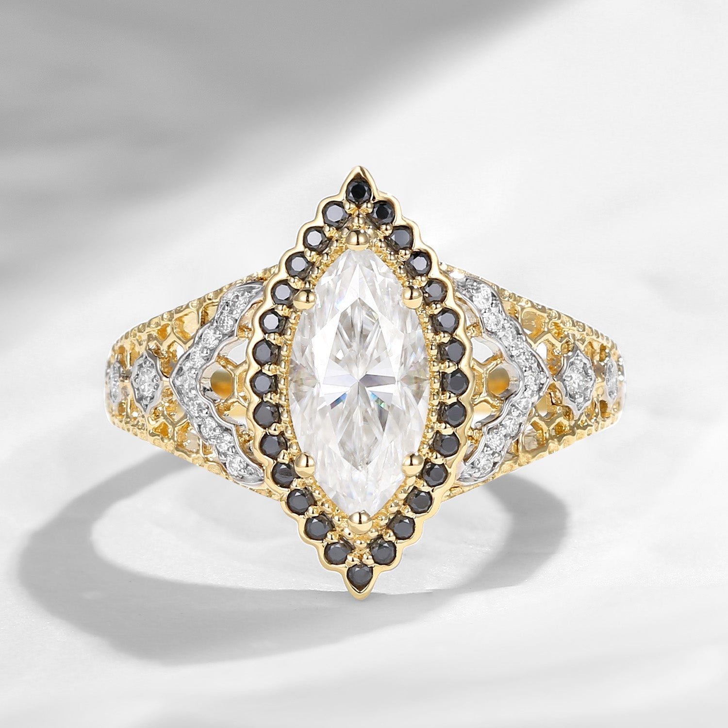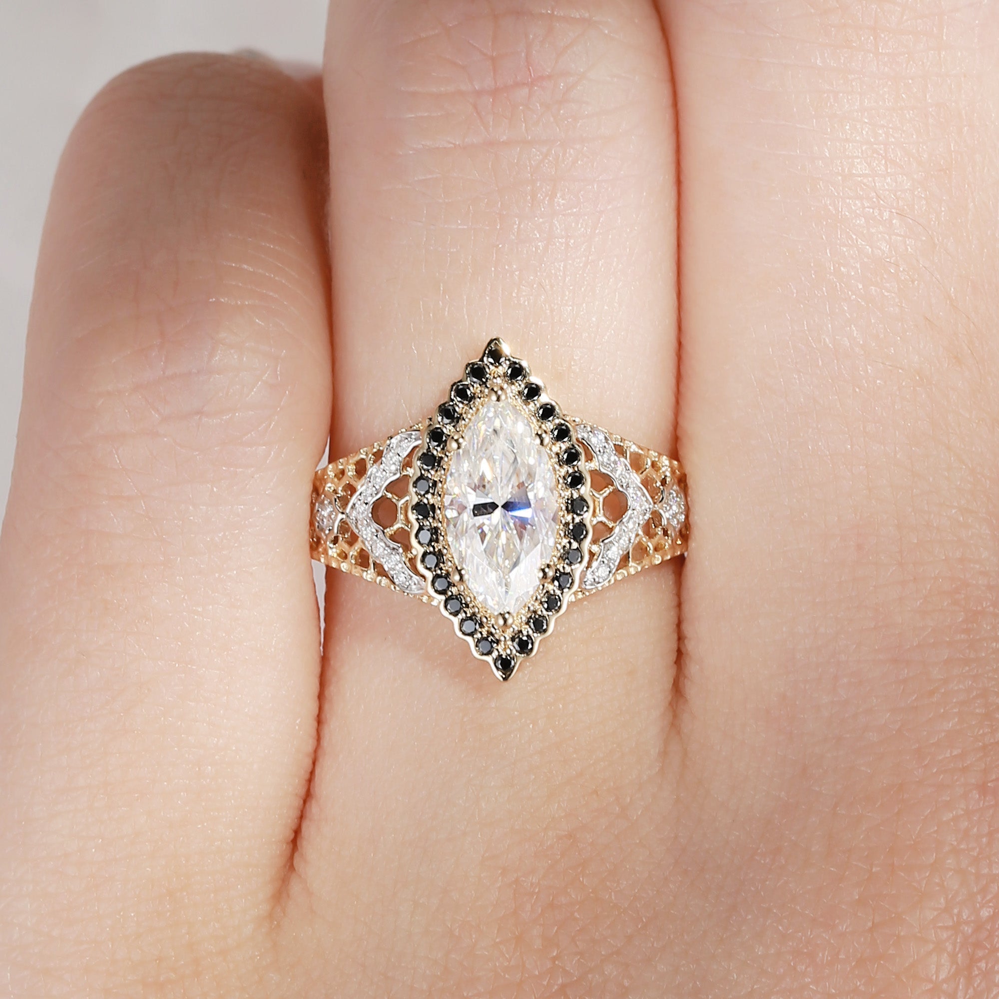 Marquise Vintage Inspired Moissanite Two-Tone Engagement Ring