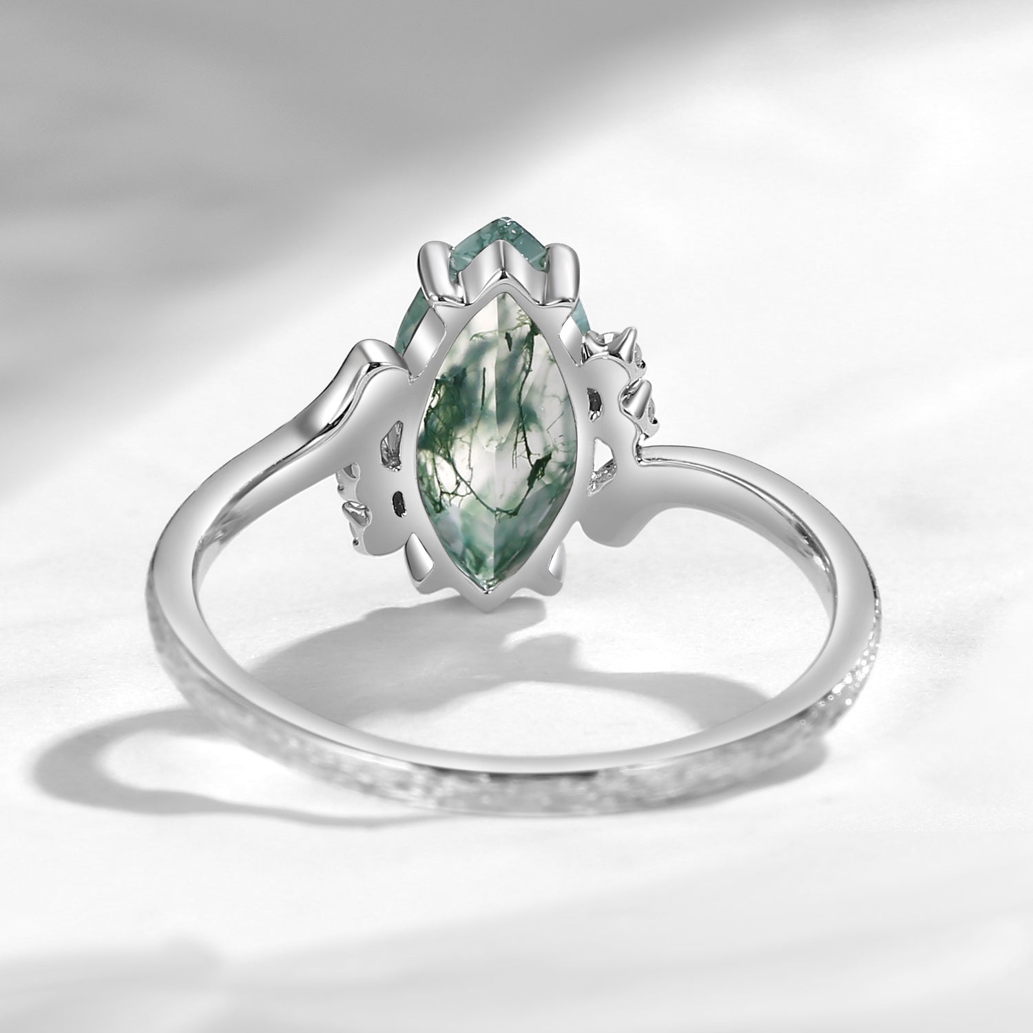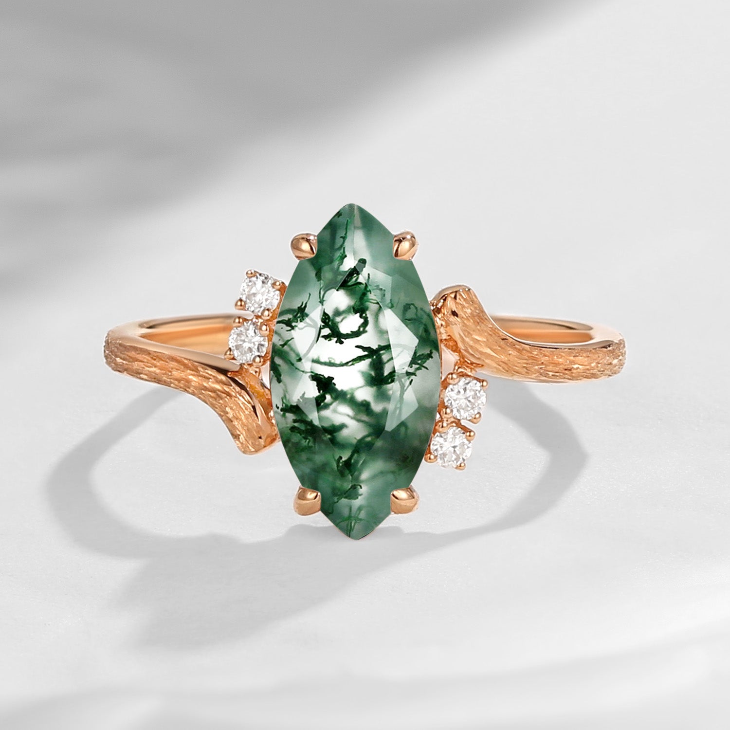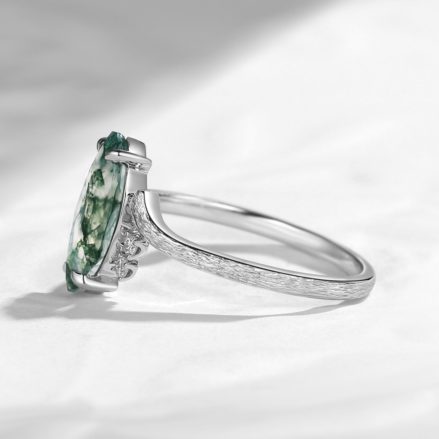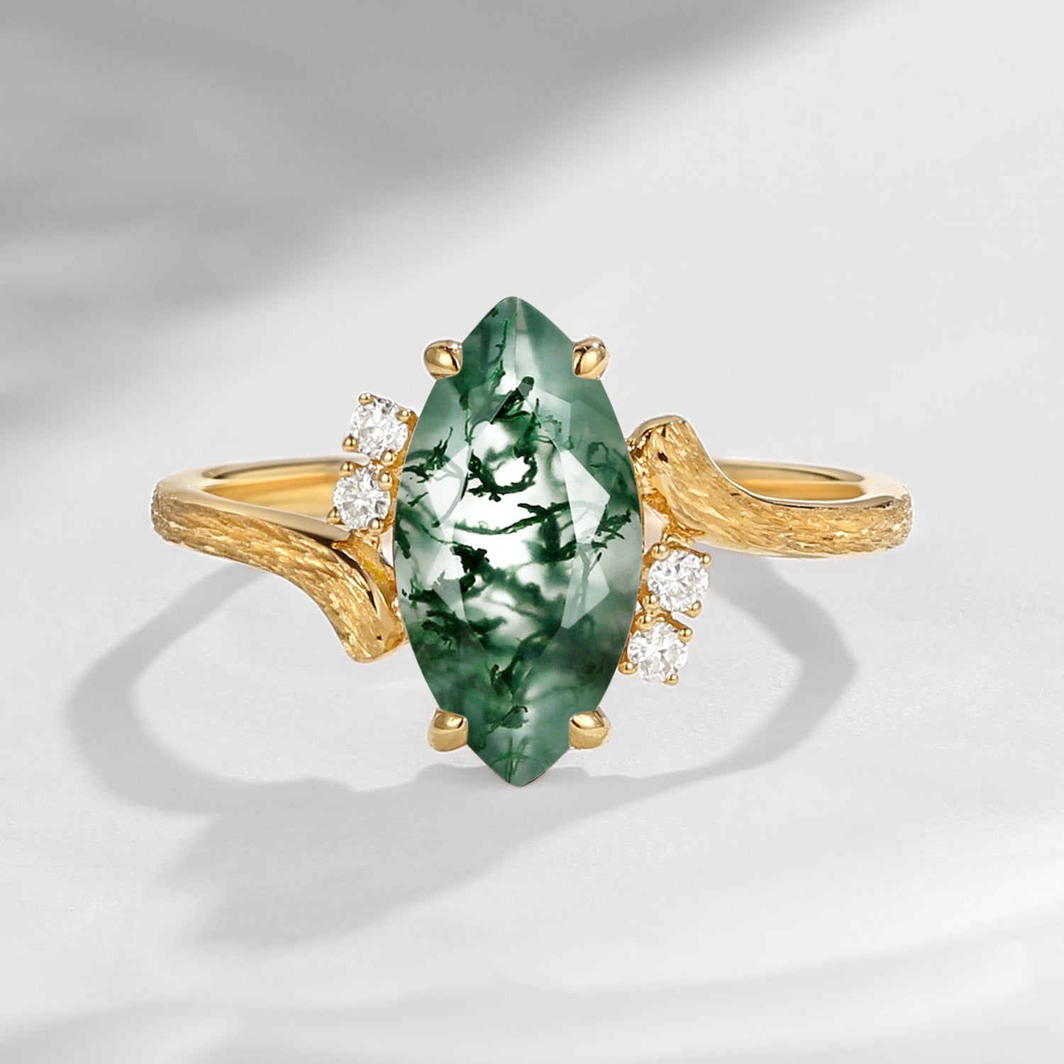 Marquise Cut Moss Agate Textured Engagement Ring - Woodland Fairy
