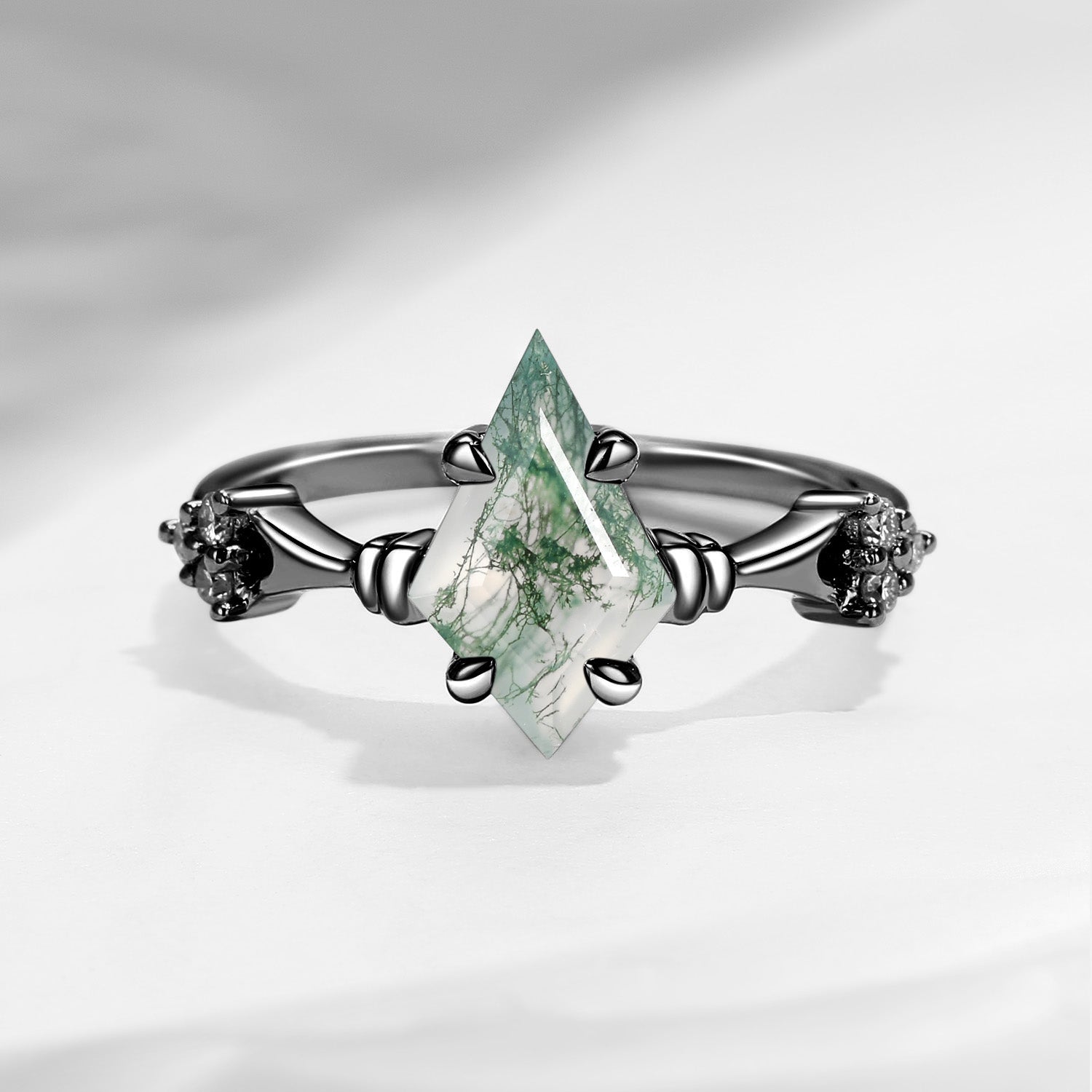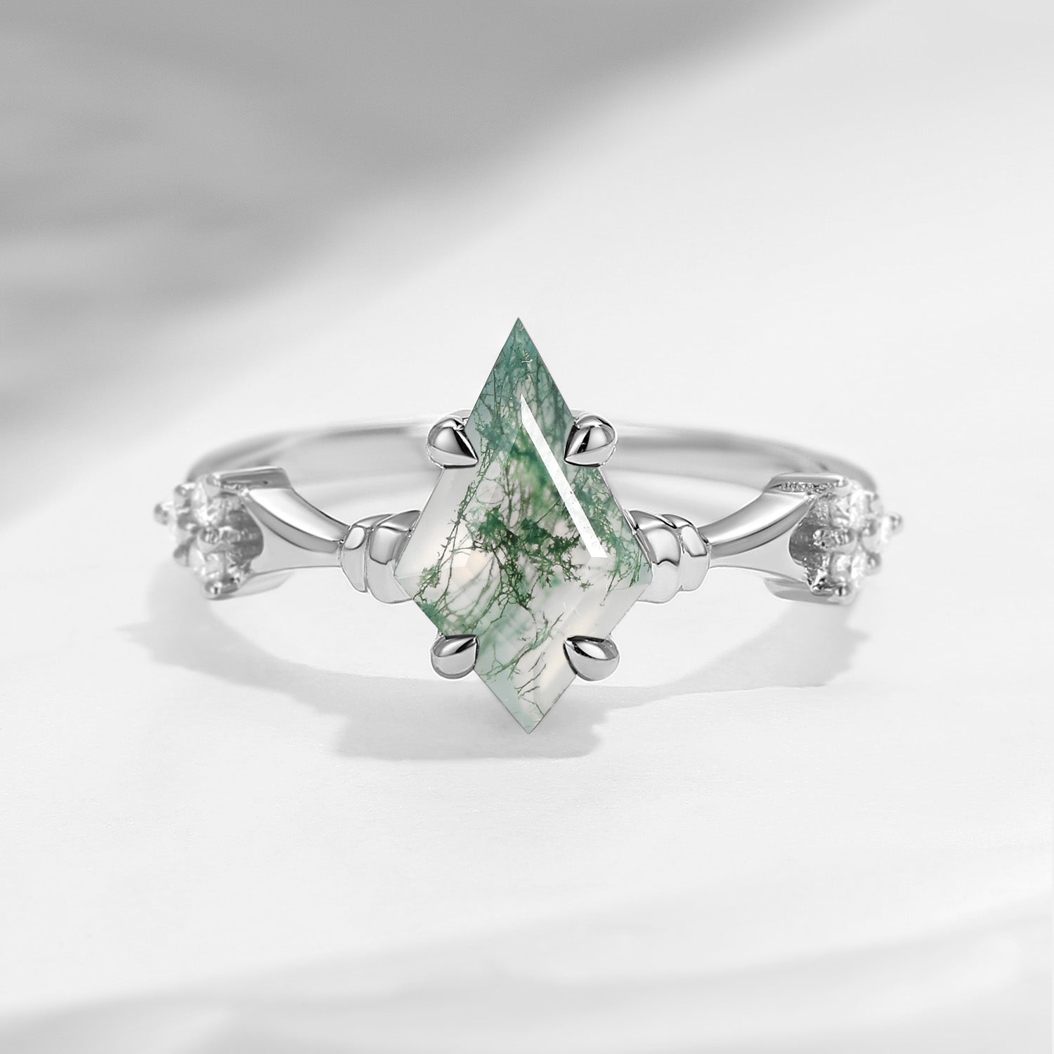 Vintage Inspired Kite Cut Moss Agate Engagement Ring