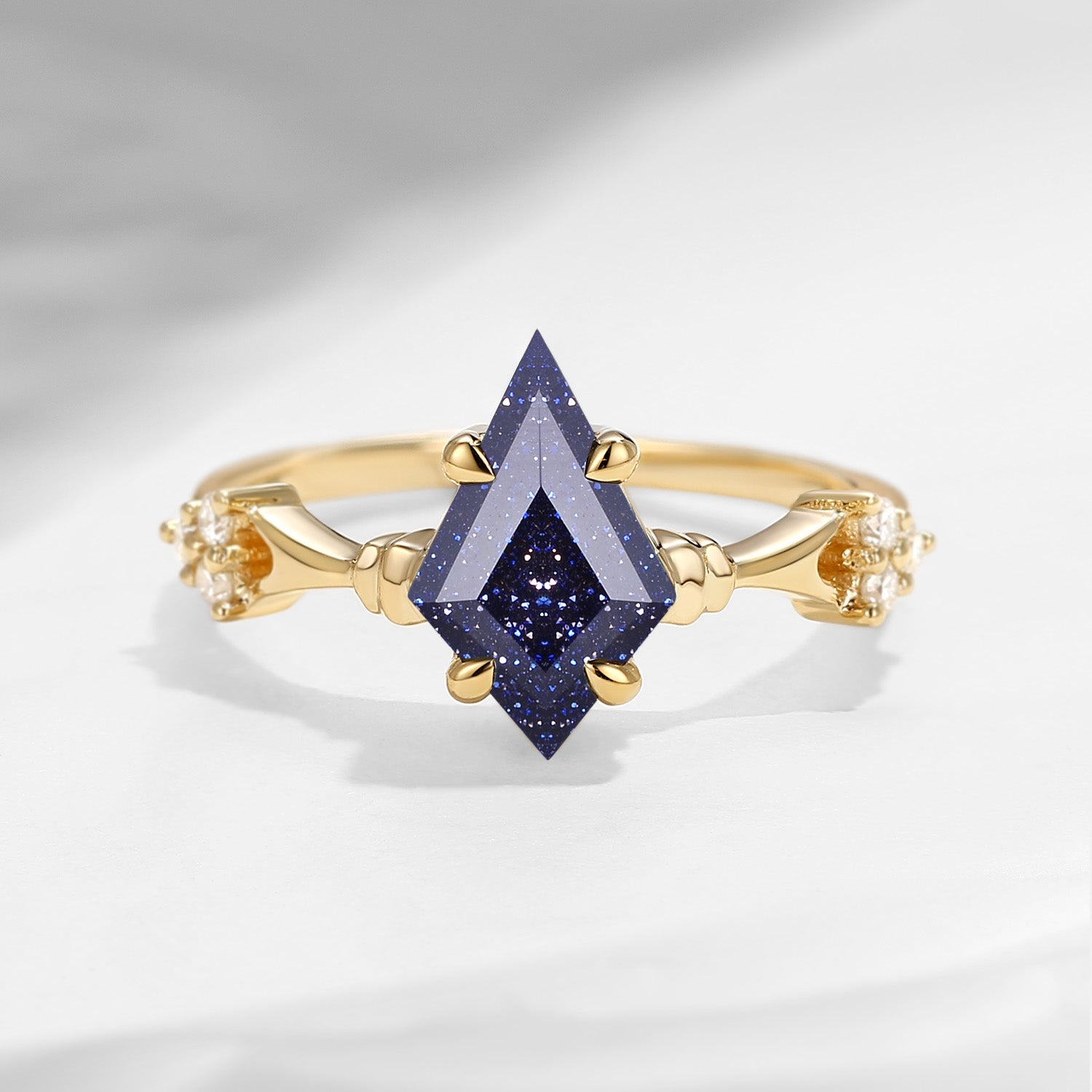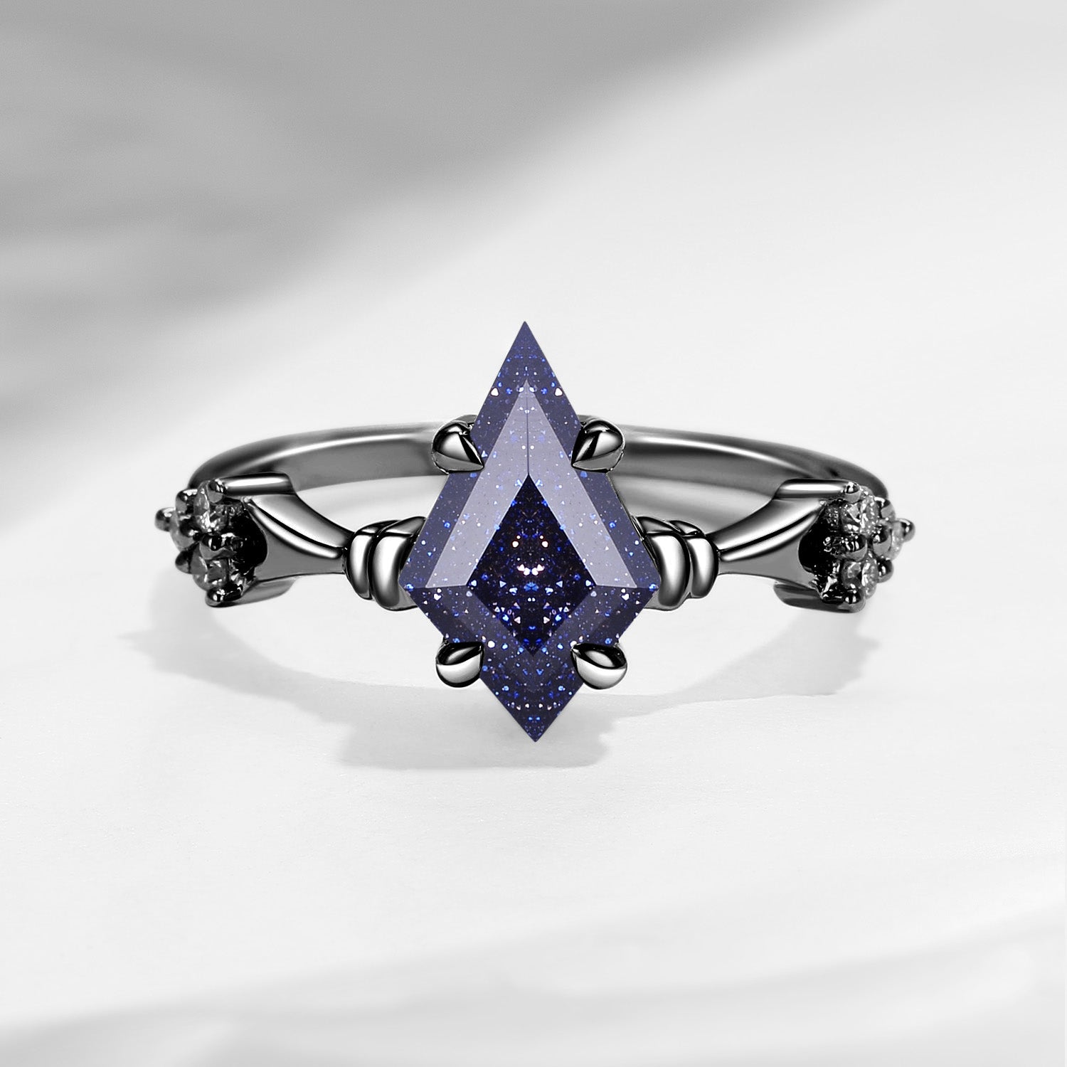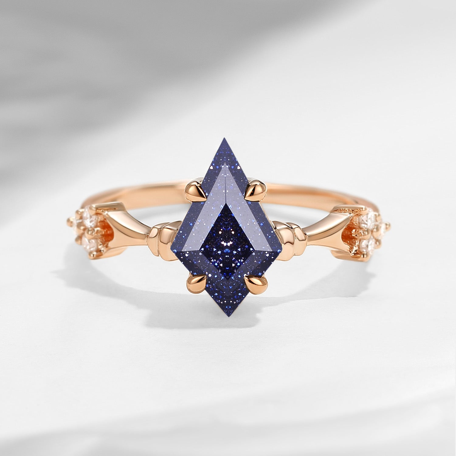 Vintage Inspired Kite Cut Blue Sandstone Engagement Ring