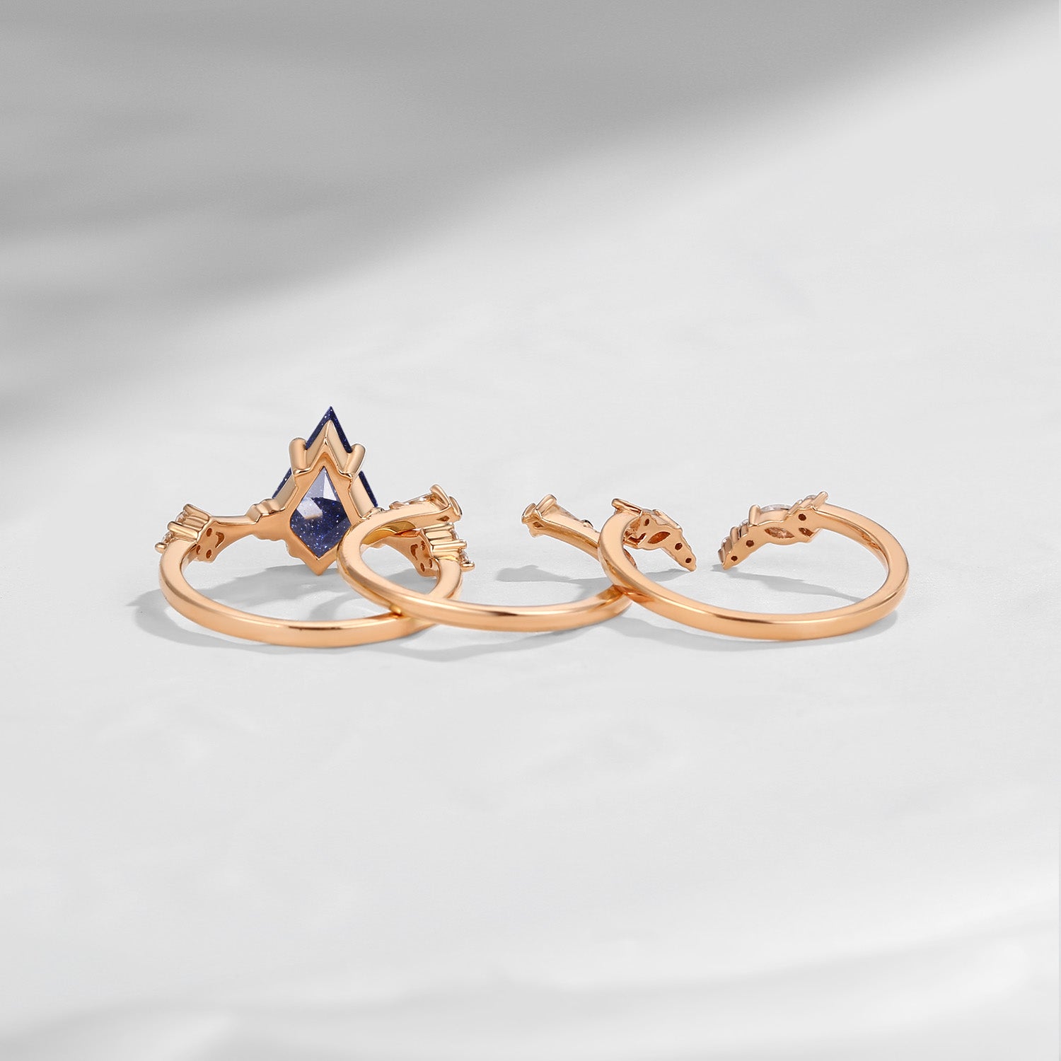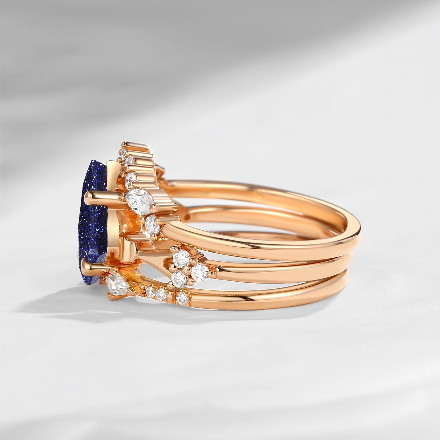 Vintage Inspired Pear Shaped Milgrain Blue Sandstone Engagement Ring Set 3pcs - Diva