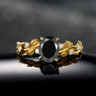 Obsidian Whisper Oval Cut Black Onyx Ring in Gold Branch Style Elegant Statement Engagement Ring