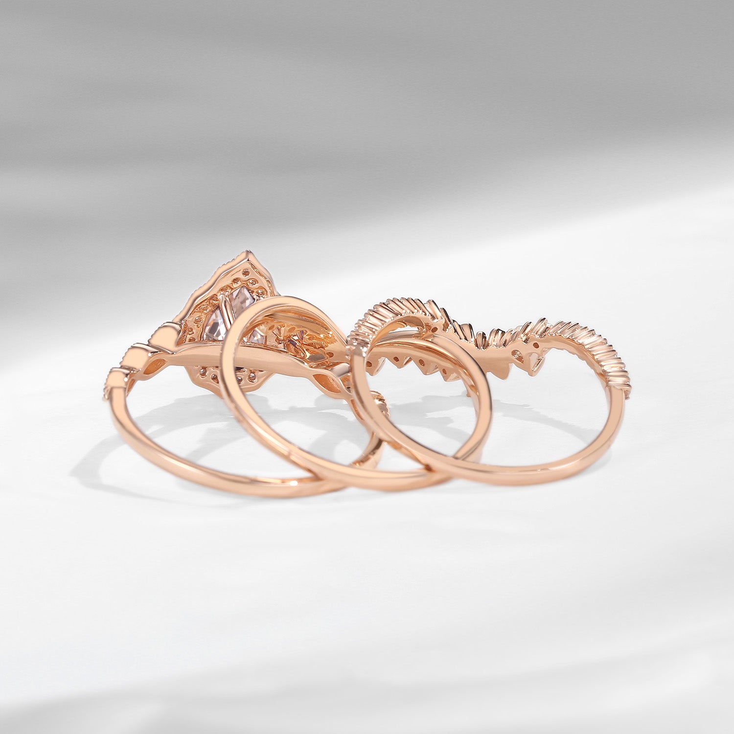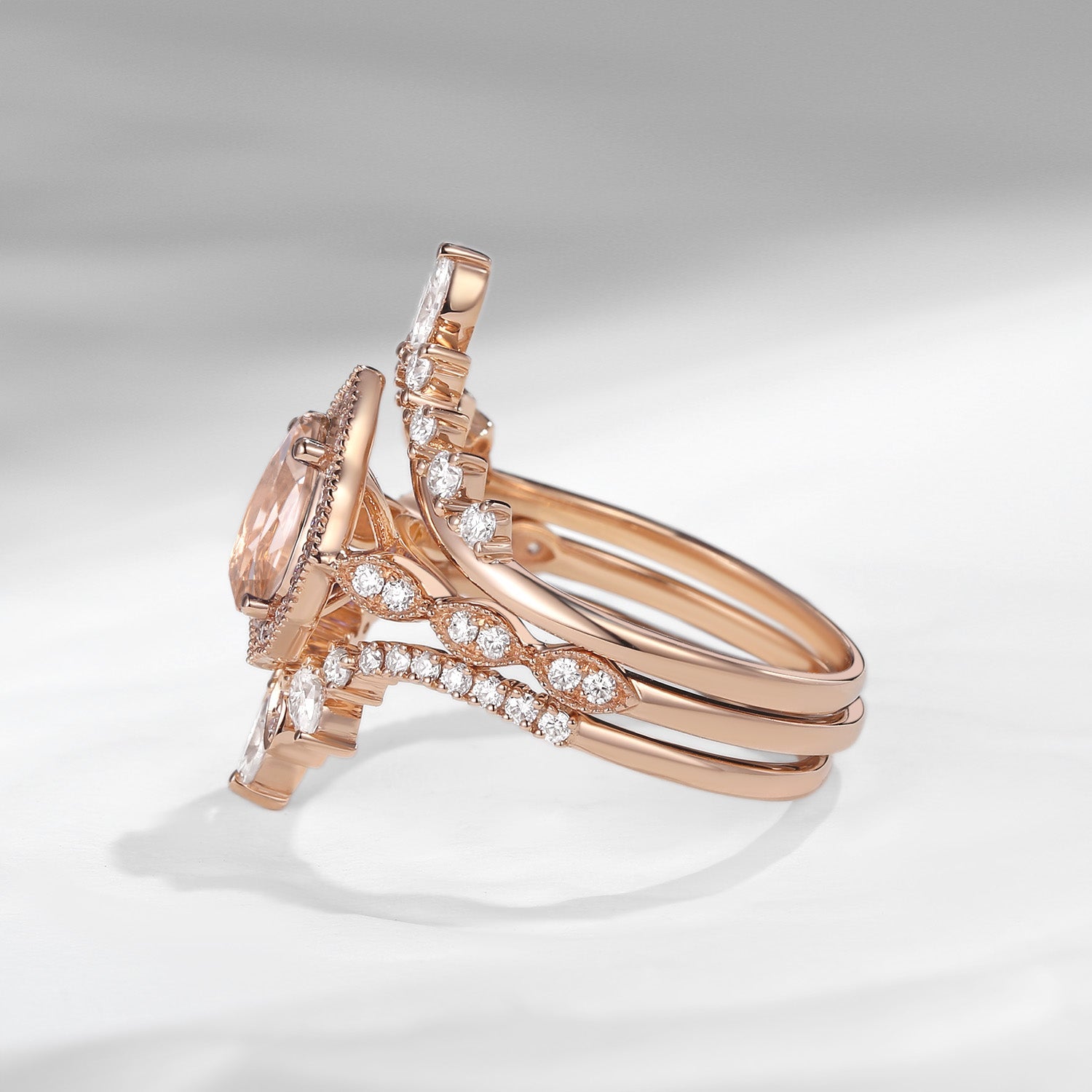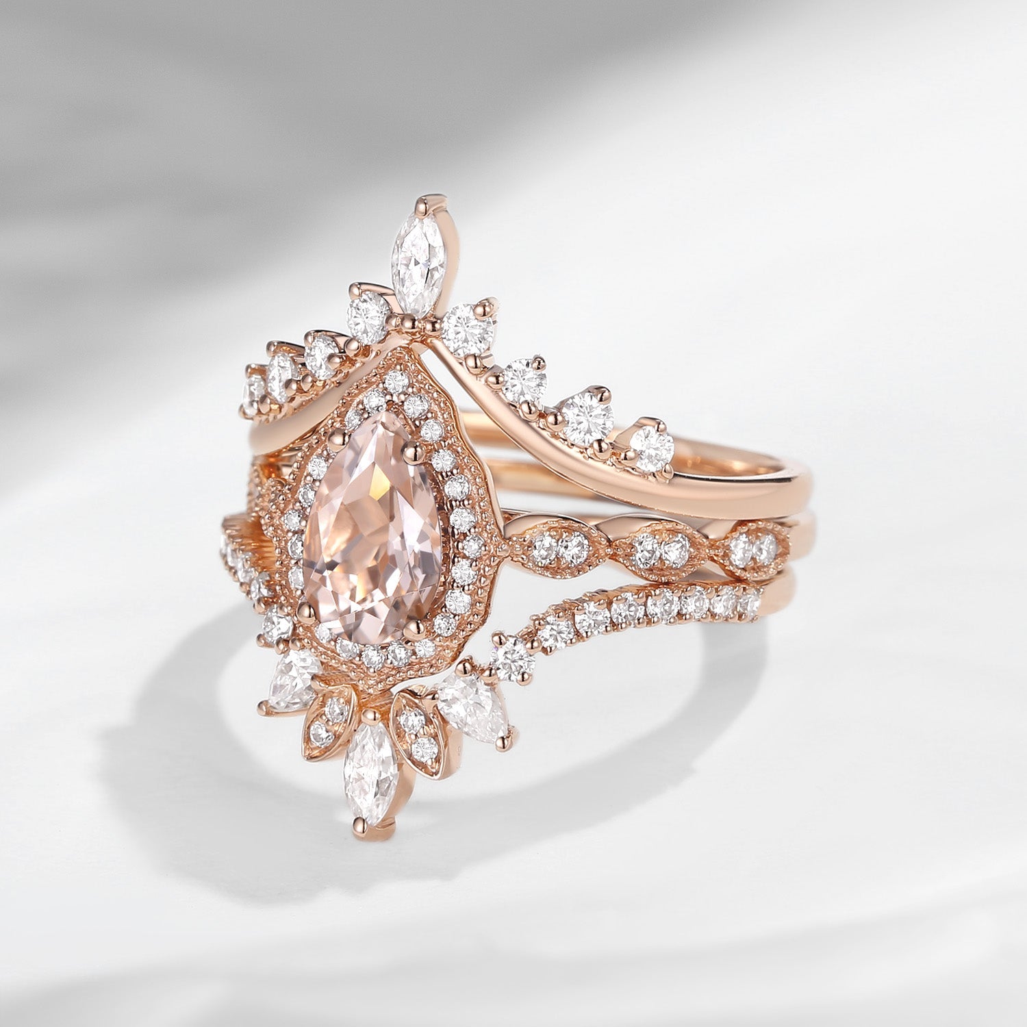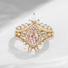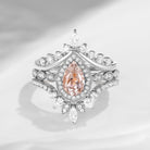 Vintage Inspired Pear Shaped Milgrain Morganite Engagement Ring Set 3pcs