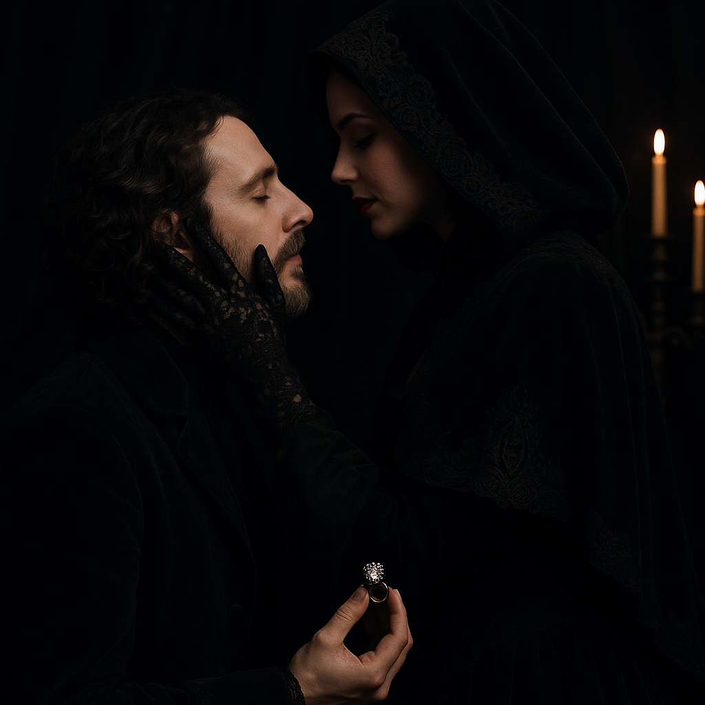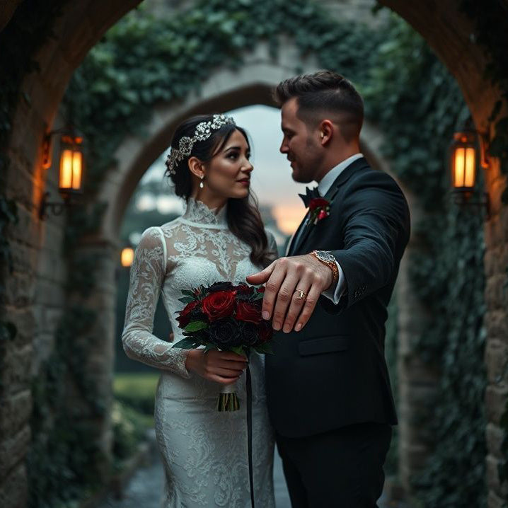 I searched for a gothic platinum ring that carried the weight of eternity, a piece that felt like moonlight forged into metal. @Eglanejewelry transformed my imagination into a relic worthy of our story. Then, in secret, I arranged the Victorian gothic photoshoot we had dreamt about for years — velvet shadows, flickering candlelight, and the kind of atmosphere where time feels like it holds its breath.