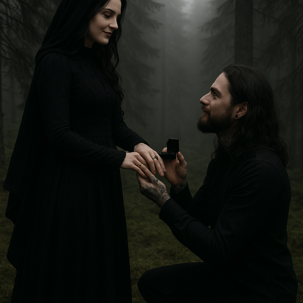 He dropped to one knee on the moss-covered ground, the mist curling around us like a gothic veil. And when he asked me to marry him, the mountains held our promise in their quiet, ancient way.